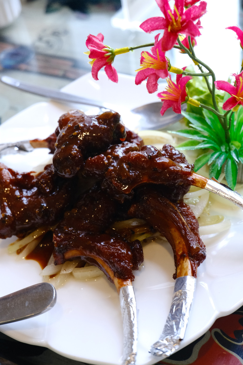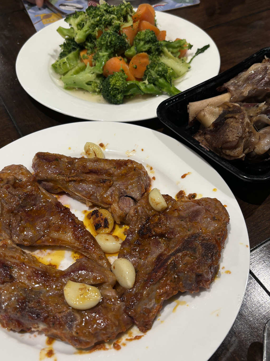 昨晚经过一家店,被食客正在大快朵颐的牛排套餐惊艳到,本想今天去吃,可是却一下子找不到,正好走到了超市门口,于是进去采购了牛排、羊腿和蔬菜,我们又返回旅馆,王大厨开工了。