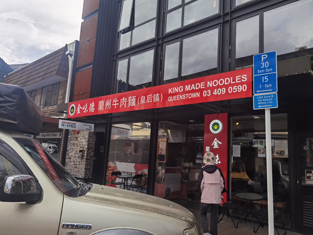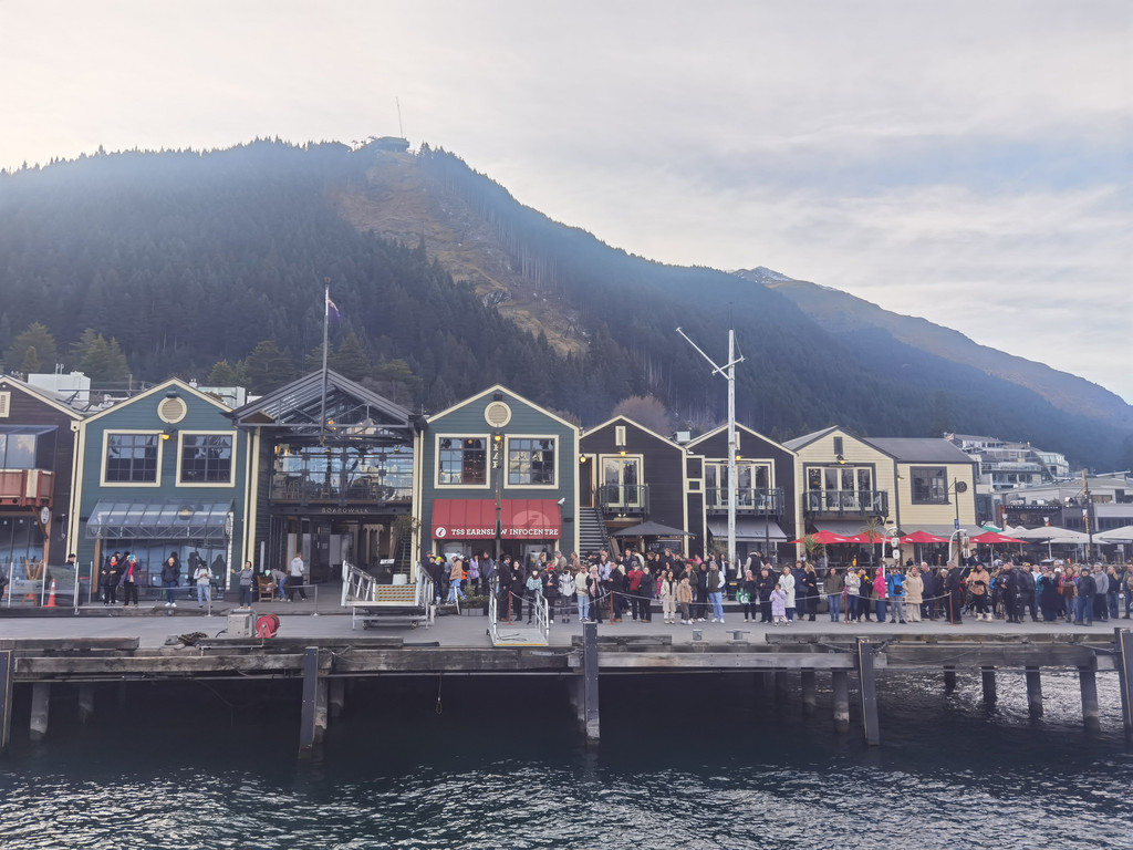 中午时分,来到皇后镇。今天是多云的天气,第一眼见到皇后镇,反而没有瓦纳卡那么惊艳,可能是缺少了太阳的加持。小镇上的公共厕所是计时的,好像是十分钟,到了时间门会自动打开哦,千万控制好时间!我们在小镇街道上随便逛逛,顺便找点午餐。湖边有个华人在煎水饺,价格公道,12个15刀,瞬间觉得中国胃发作,大快朵颐了一顿。