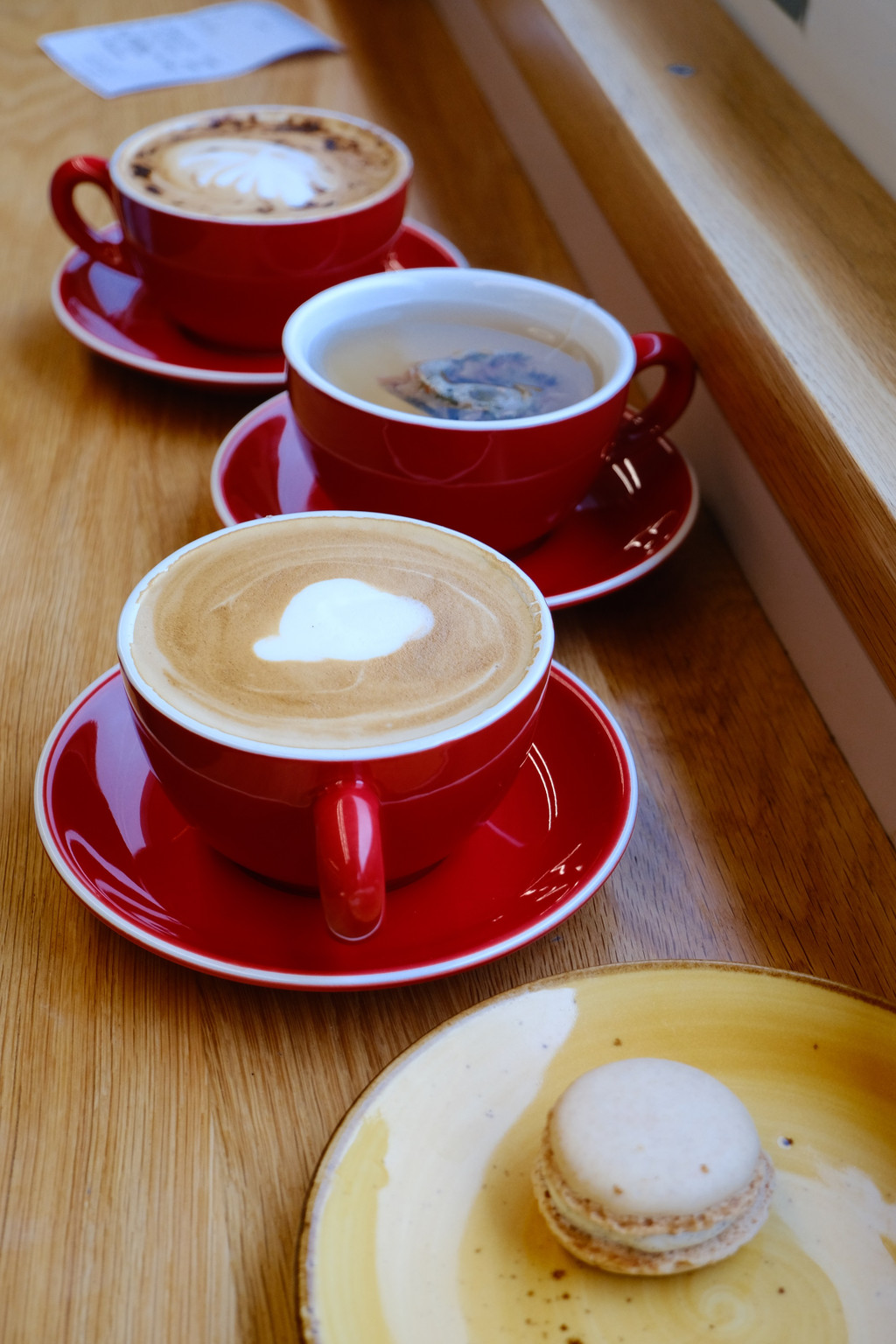 船上有吃的供应,价格合理,我们仨点了两杯咖啡、一杯茶、一份炸薯条和一个马卡龙,一共31.5刀,先拍照再品尝,正在自得其乐的时候,游船晃得越来越厉害,忽然间,船身倾斜过来,放在桌上的吃的喝的嘶溜一声往下滑,还没等我反应过来,咖啡、薯条、面包一下子掉在地上,咖啡盘子也打破了,真是乐极生悲啊,好心情一下子跌落谷底,心想100块没了。