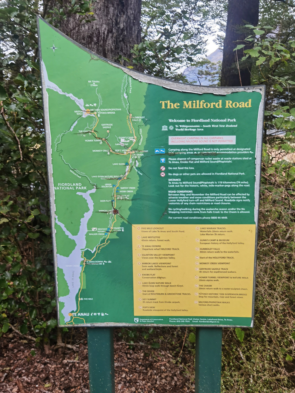 今日8点出发,我们6点多起床,拉开窗帘,外面乌黑一片,洗漱完毕再走出屋外,已是微微露出晨曦,到处都是鸟儿的鸣叫,清晨的蒂安瑙湖边已有早起的人儿在晨跑。有了昨天的经验,今天行李装车很顺利,我们按时出发,向峡湾方向驶去。