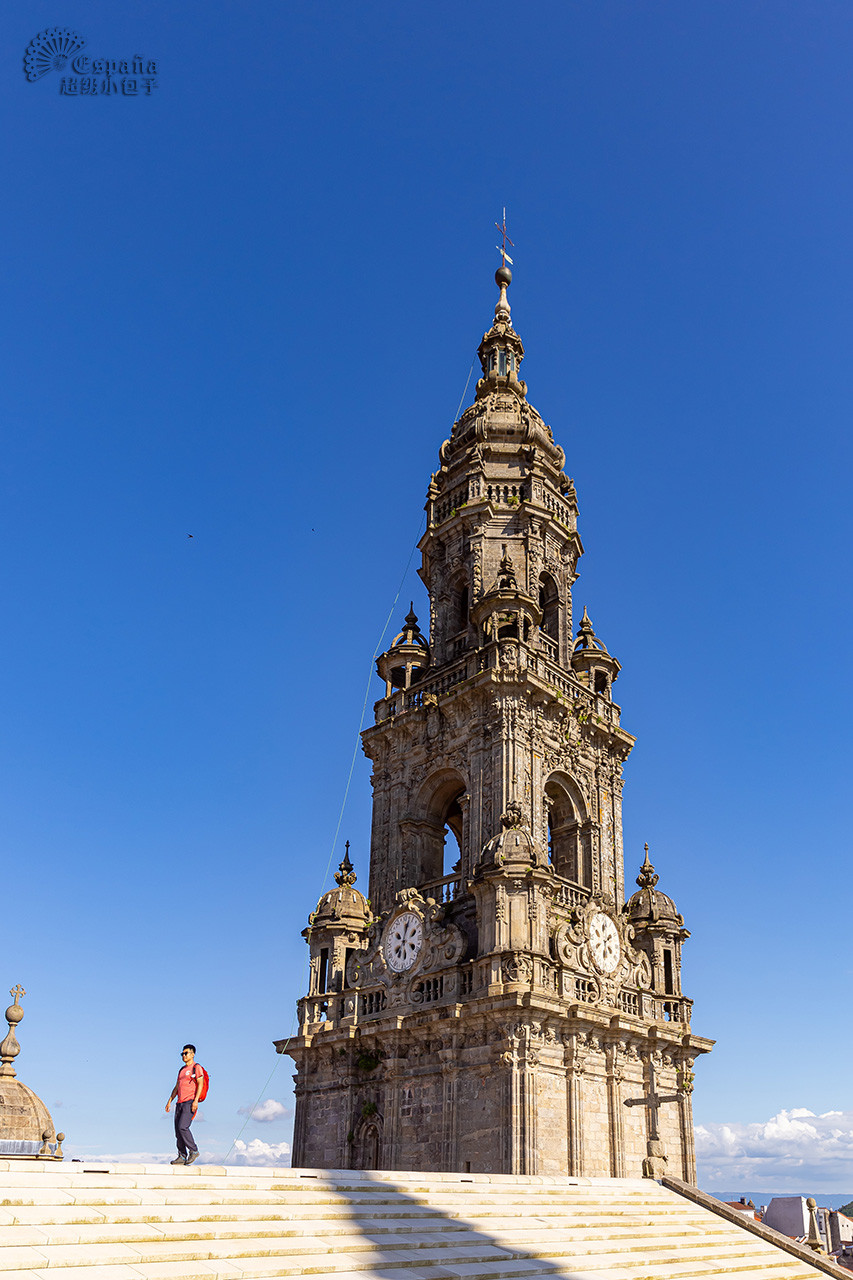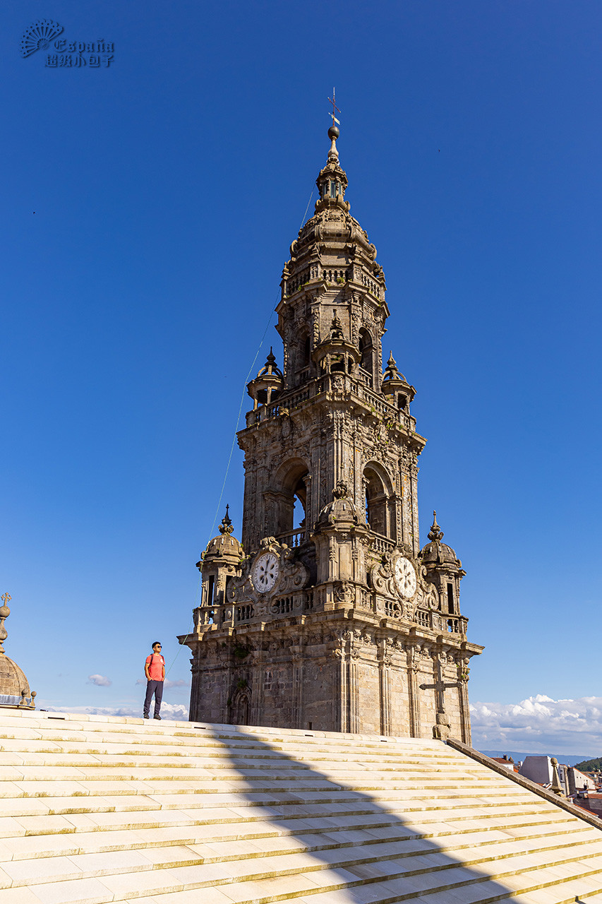 参观圣地亚哥大教堂最有特色的体验,莫过于亲自爬上屋顶平台了。这里位于大教堂面对广场的奥布拉多伊洛立面正后方。如果把“奥布拉多伊洛立面”比作教堂的正脸,那么我们相当于站在它的肩膀或是后背的位置。