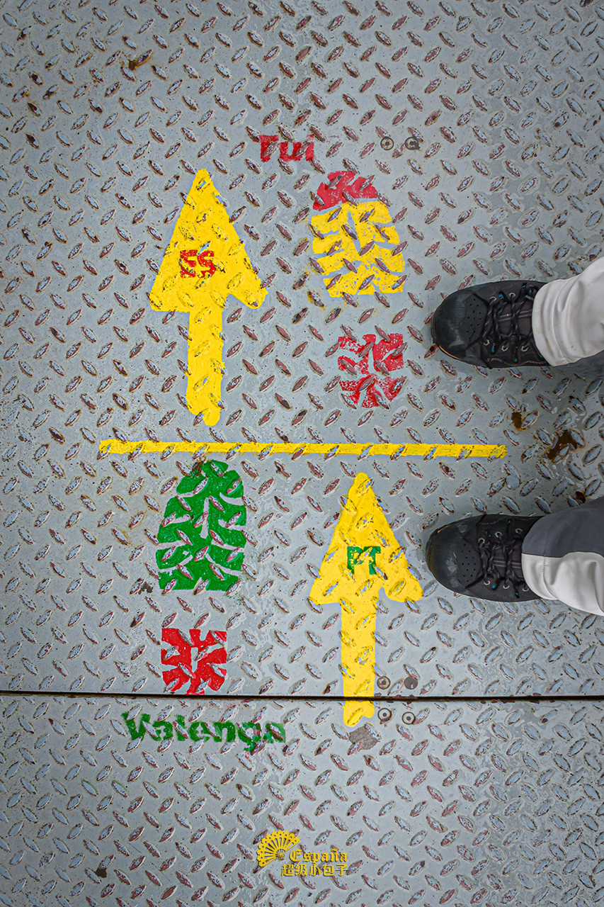 在葡萄牙与西班牙的界河之上,如果徒步过桥,会在走到河中心的位置在桥上看到这样的徒步和国界标记,十分有趣。