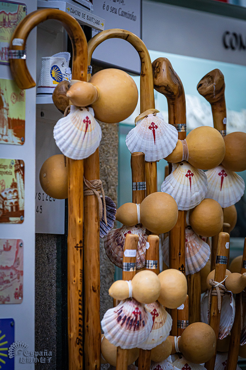 在朝圣之路上徒步的人们,除了每人必备一本“护照”之外,还经常能见到他们背包上挂着一个贝壳。至于这个贝壳的来历众说纷纭:有人说它仿佛是朝圣者张开的手掌;有说法认为它是在朝圣之路上方便人们舀水的容器;有人说这是女神维纳斯的圣印;还有人说这贝壳就象征着西班牙这片大陆,而上面的纹路就仿佛一条条朝圣之路的轨迹。