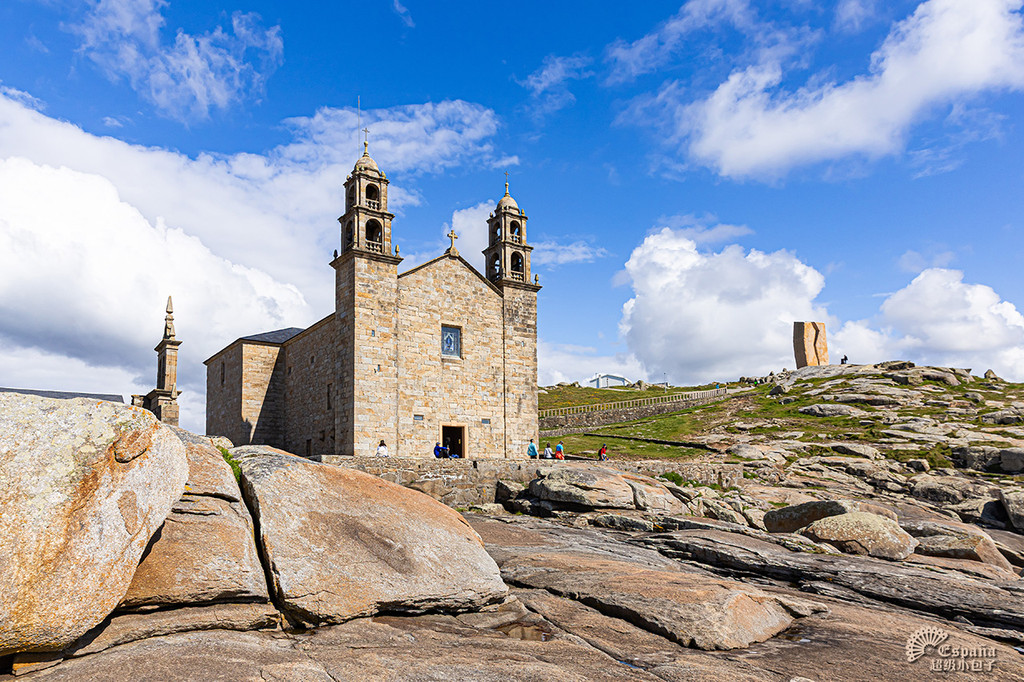 离菲尼斯特雷不远,穆希亚的(Muxía)“圣骸之船”教堂则提供了另一个关于抵达的视角。教堂内供奉着一艘精致的石船模型,其灵感直接来源于载运圣雅各遗骸抵达此地的传说石船。