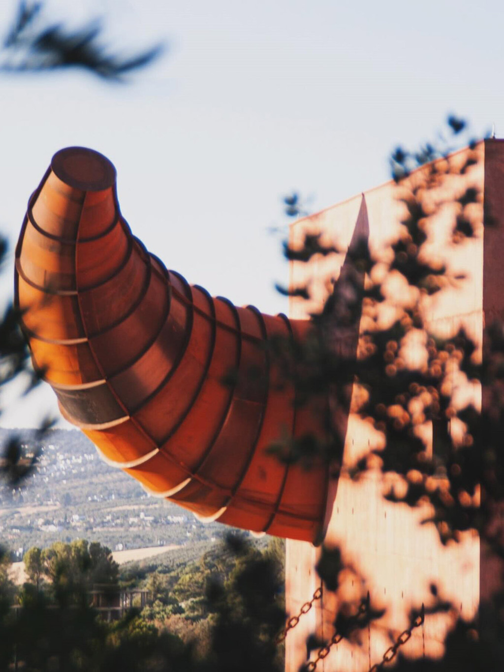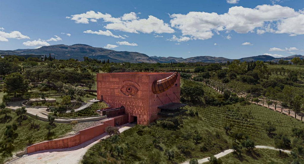 初见阿尔玛扎拉橄榄油坊博物馆(Museo de la Almazara)——世界首家橄榄油坊特色博物馆,你便会被它独特的外形吸引。建筑上突出的牛角造型,是对龙达斗牛传统的致敬;位于建筑正中央的那只“眼睛”,宛如守护者般静静凝视着这片土地;而墙面上精心设计的水道系统,水流在阳光下波光粼粼,仿佛将橄榄油的生命律动,化为了建筑的永恒记忆。这不是一座普通的建筑,而是设计师菲利普•斯塔克(Philippe Starck)为这片橄榄园谱写的一首视觉诗。