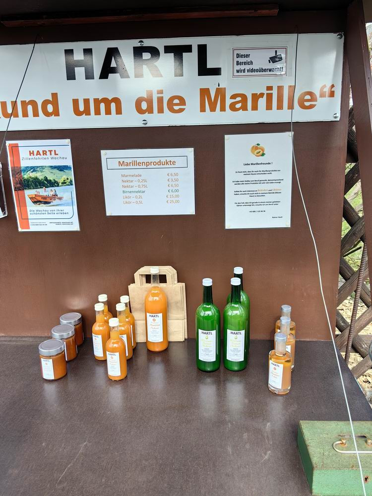小镇的杏产品同葡萄酒一样,是主要的农产品。这是小镇的杏产品无人销售点。