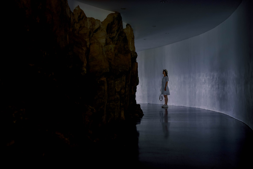 没有一丝过多的装饰,岩石走廊里一半是原生态的岩石,一半是纯白的墙壁,人类与自然在此对话,和谐相处。光影之间、寸步之间,被设计师的独具匠心深深震撼。