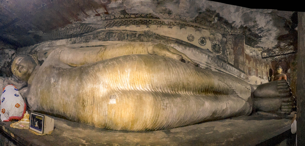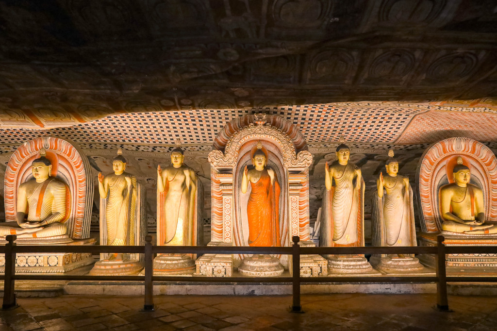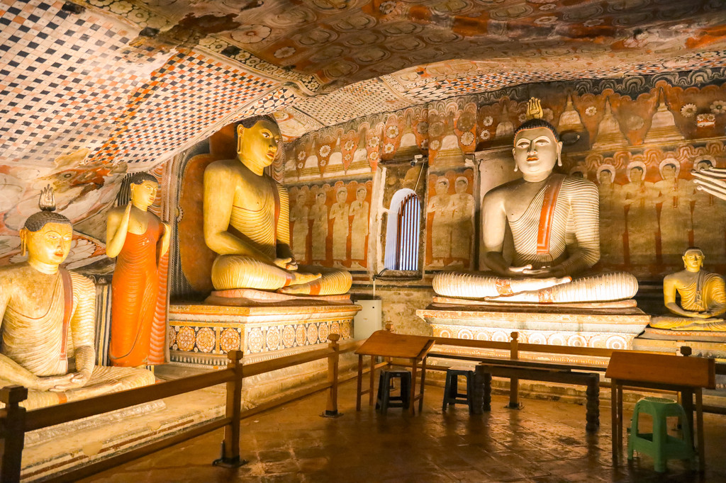 修建于公元前1世纪的丹布勒石窟位于一座石山之内,石窟面积很大,里面珍藏着两千多平米的壁画和157尊雕像,五所圣堂,各有特色,有着很高的宗教艺术价值。