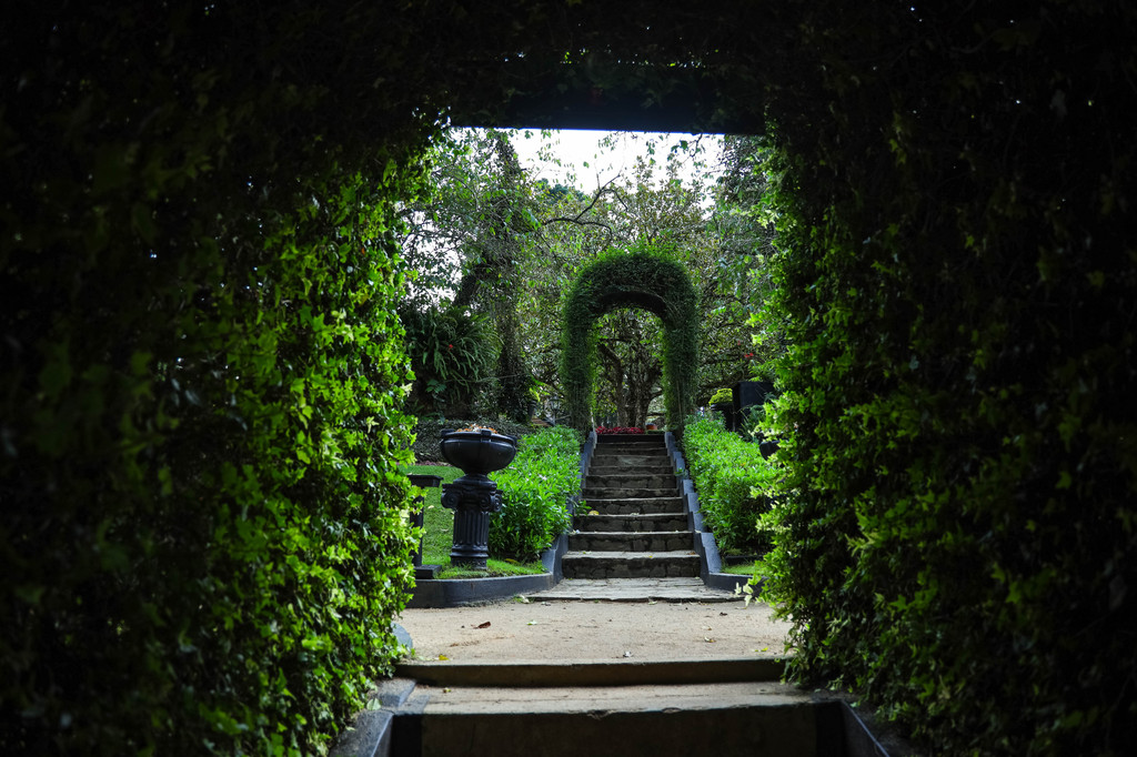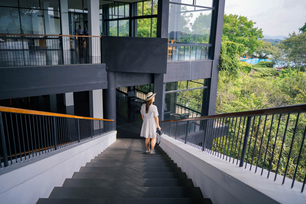 沿着楼梯慢慢走,黑色的外墙与台阶,白色的楼梯、深木色的扶手,触手可及的绿色和好空气,各种斯里兰卡的文化符号,遗产酒店就是一个丛林中的艺术品。