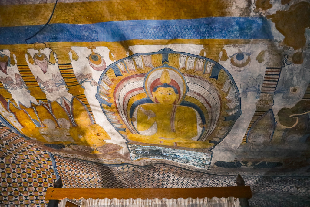 而三号洞中的壁画则是斯里兰卡18世纪典型的绘画风格,极具研究意义,其中的佛像数量也非常之多,在斯里兰卡18世纪时,振兴了佛教的国王Kirti Sri Rajainha的塑像也在其中,足可见斯里兰卡对于佛教的重视程度。