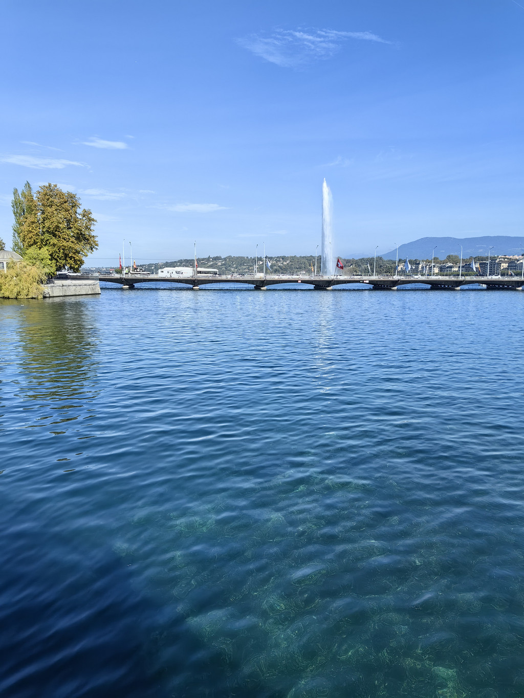 D13从蒙特勒坐一个小时火车前往日内瓦,坐电车随意逛:联合国欧洲总部驻地万国宫以及马路对面的缺脚椅子广场;日内瓦湖边、勃朗桥、大喷泉;咖啡馆、晒太阳,突出两个字:悠闲。在城市里不经意的某些特定角度,还能看到阿尔卑斯山脉和极具辨识度的勃朗峰。