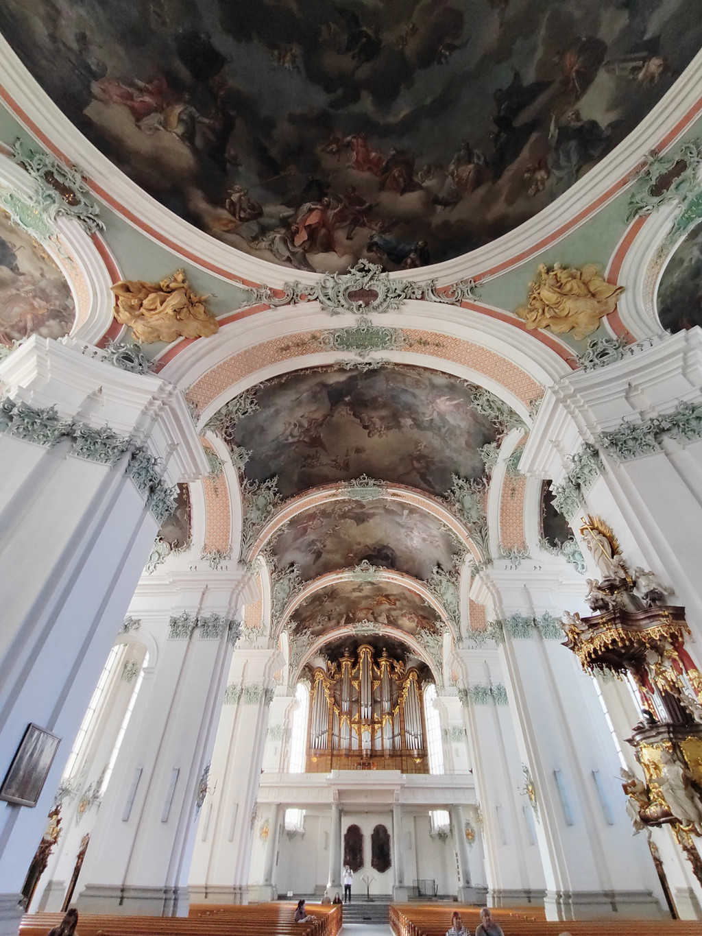 星期天中午的圣加仑街上只有零星游客,从火车站走到世界文化遗产的修道院建筑群大约一公里,自助办理入住后附近老街随意游走,感受小镇的宁静。傍晚在壁画雕塑环绕、富丽堂皇的古老大教堂里聆听管风琴演奏,琴声轰鸣,庄重而宏大,别一样的体验。