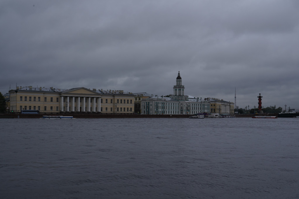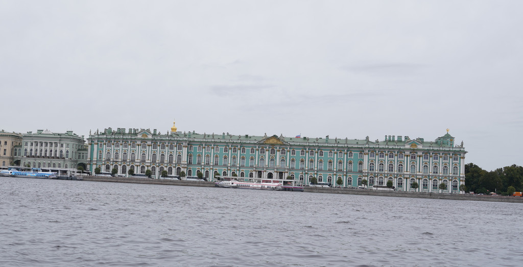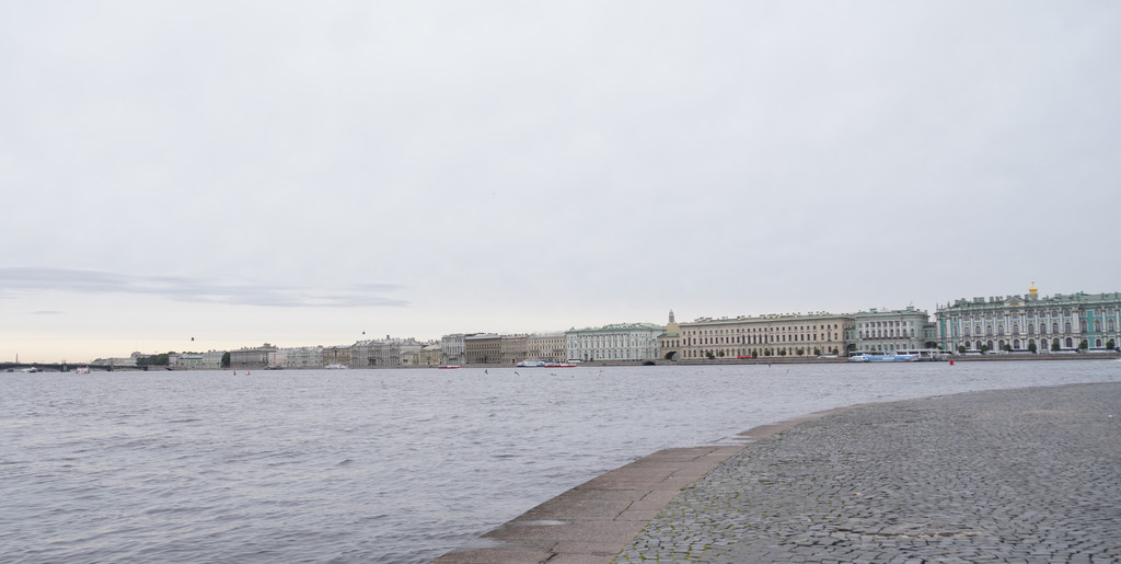 从瓦西里岛古港拍摄冬宫博物馆建筑群。