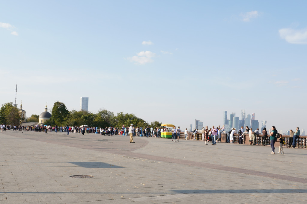 麻雀山观景平台。许多大型的活动都在这里举行。这广场够宽广,是来莫斯科旅行的打卡地之一,这也有众多“陷阱密布”例如穿着古典服饰盛情邀请合影,穿着卡通的蜘蛛俠,漂亮的鸽子,只要相机一举,最小100元人民币。