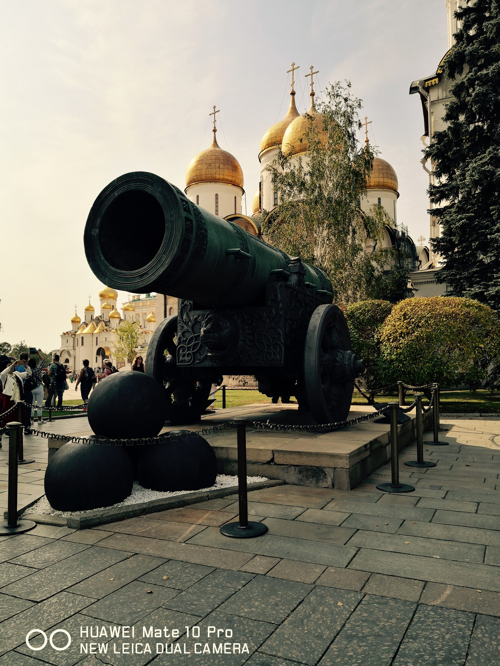 钟王的不远处,摆放着重40吨的古式铜铸炮王,距今已有400多年的历史,一个炮弹也有2吨重,不过这门炮王之称的大炮,从来没有动用过,就在这里呆了400年来显示俄罗斯是一个战斗民族。