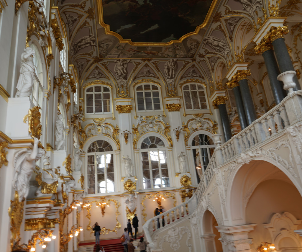 来到圣彼得堡的第一天,行程参观俄罗斯国家博物馆【艾尔米塔什博物馆】是我们熟悉的冬宫,六宫殿建筑群中的一个宫殿。它坐落在圣彼德堡宫殿广场。【艾尔米塔什博物馆】与伦敦的【大英博物馆】巴黎的【卢浮宫】纽约的【大都会艺术博物馆】称为世界四大博物馆。在世界四大博物馆中,我已经参观了三个,就差纽约的【大都会艺术博物馆】在纽约期间,因为时间关系没能观看,但也很满足了。