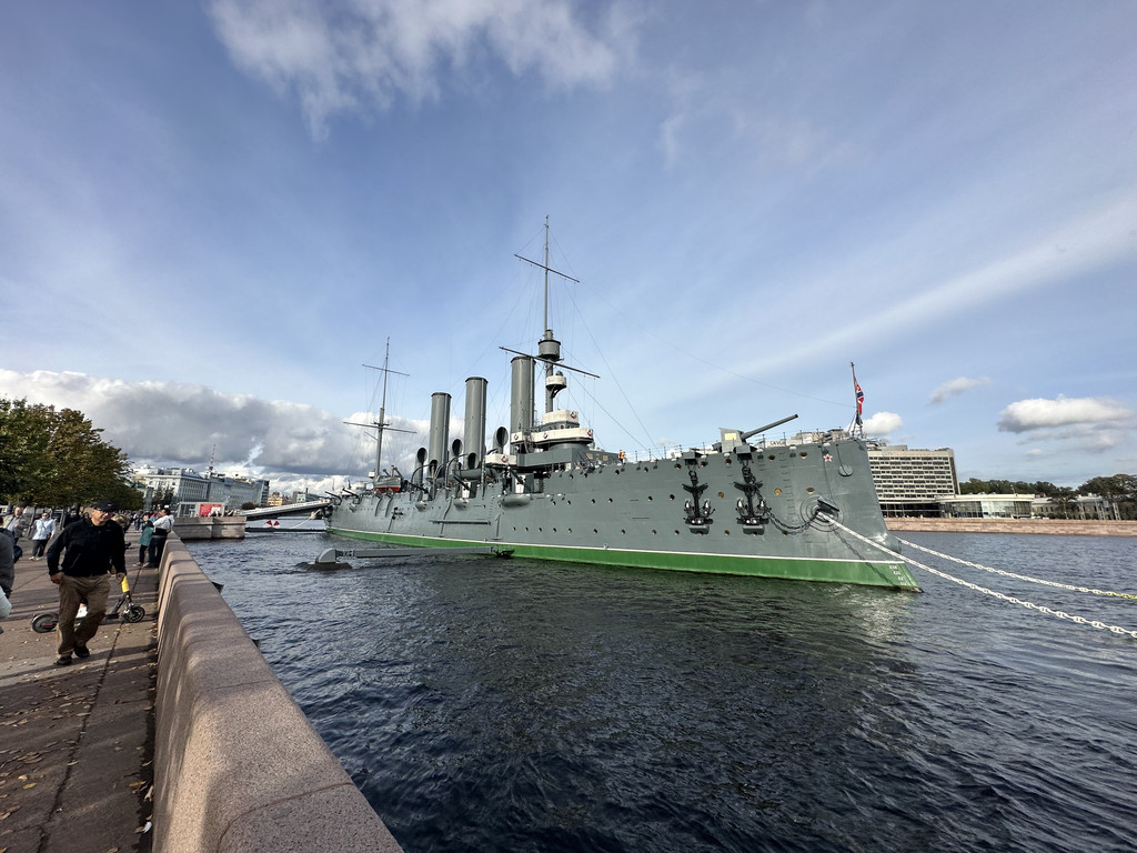 涅瓦河畔,十月革命炮打冬宫的军舰。