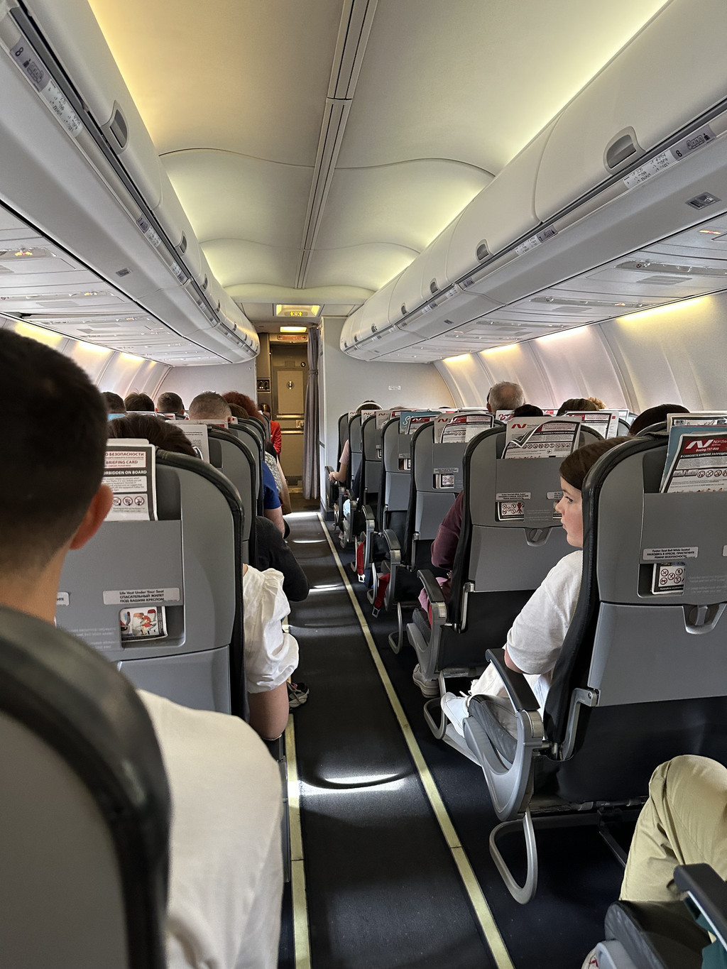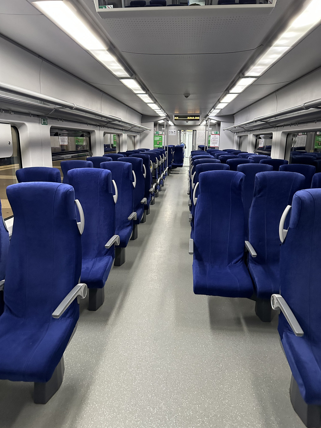空空荡荡的车厢只有3个乘客,值得注意的是,电车的门是需要自己手按的,如果你上下车不自己按的话,它永远都不会开。