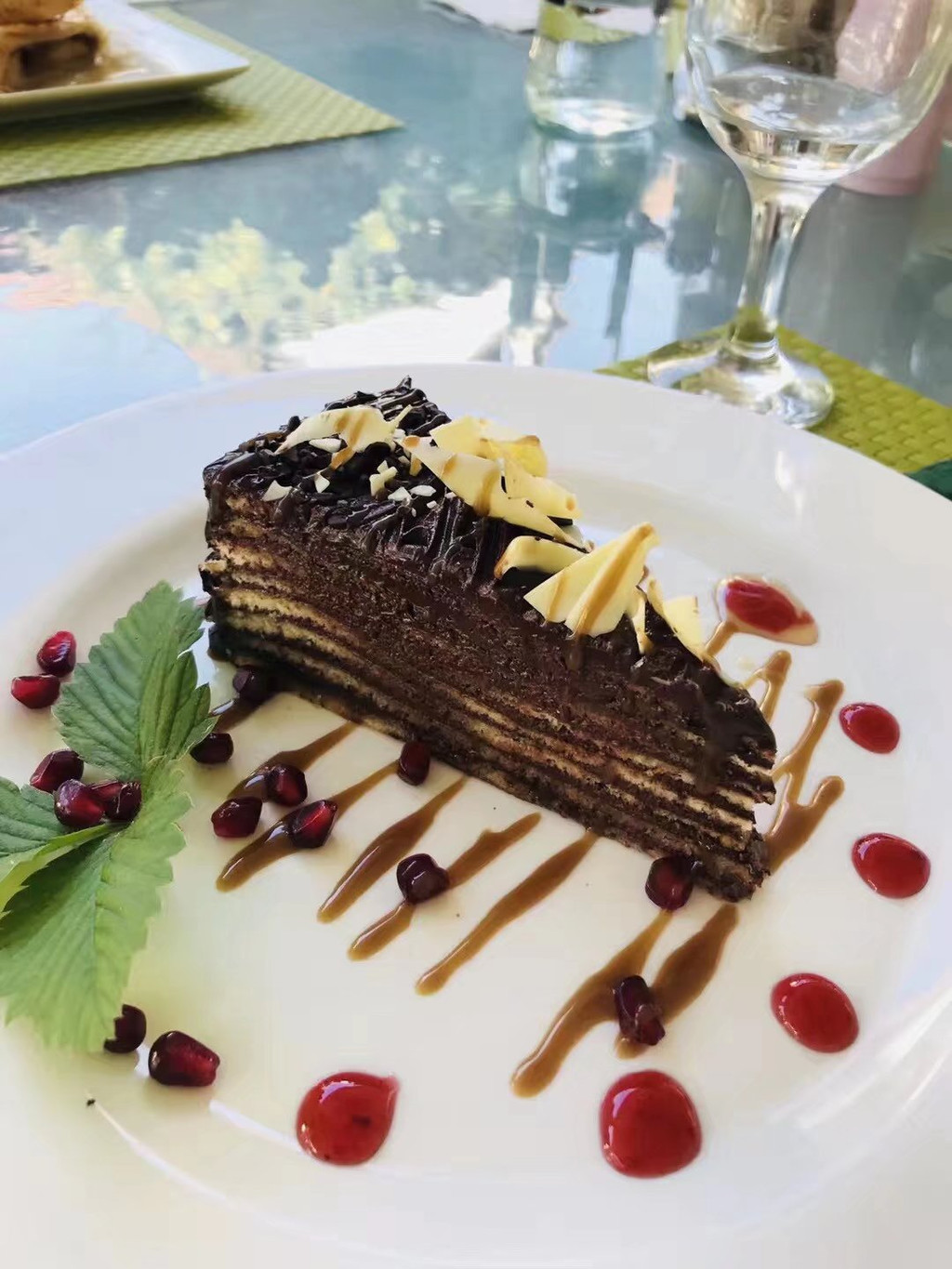 虽然因为行李和接机影响,到酒店有点晚了,错过了欢迎晚宴,不过见到了来自以色列的管家就万事妥当了,安排先去酒店餐厅免费吃自助,房卡也早已备好。闺女先回到房间,立马报信:“老爸老妈,你们吃了快上来,搞快点哦,管家在房间为我们准备了蛋糕,还有亲笔签名的贺卡哦!”那份孩子简单的小快乐、小激动,让我们也跟着感动了。是的,感动