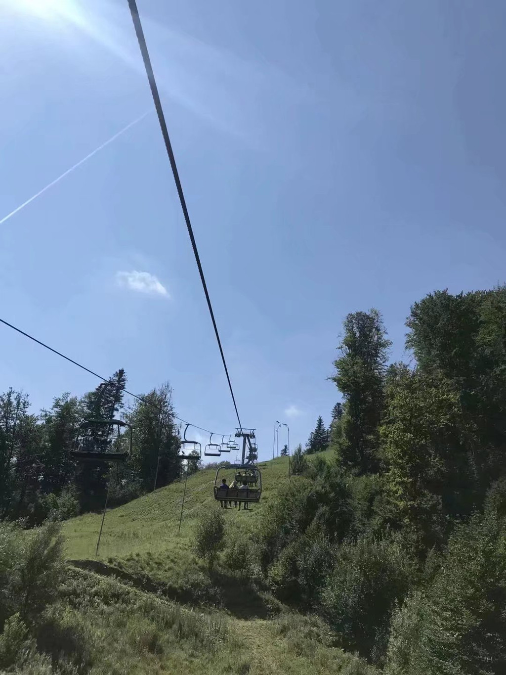 在罗马尼亚朋友的带领下,继续登山,在夏日里去感受一下布柯维纳冬日的雪道。缆车需要自费,5列伊,不收欧,我们家没有换列伊,罗马尼亚的朋友二话不说,直接拿200列伊递给我们,好同志啊!