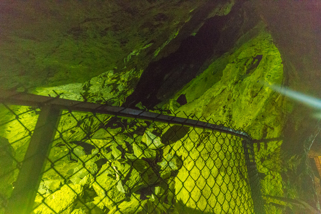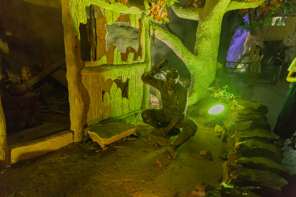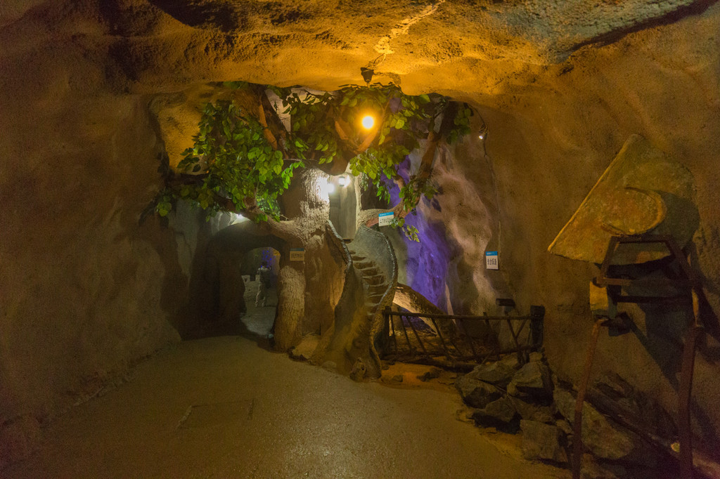 在夜幕隆重之下,矿洞之中仿佛多了一丝神秘。游客们也不愿离开,他们继续沿着矿洞深深探索。此时,幽暗的环境之中,LED灯光五光十色,这里已经变成了光的海洋。