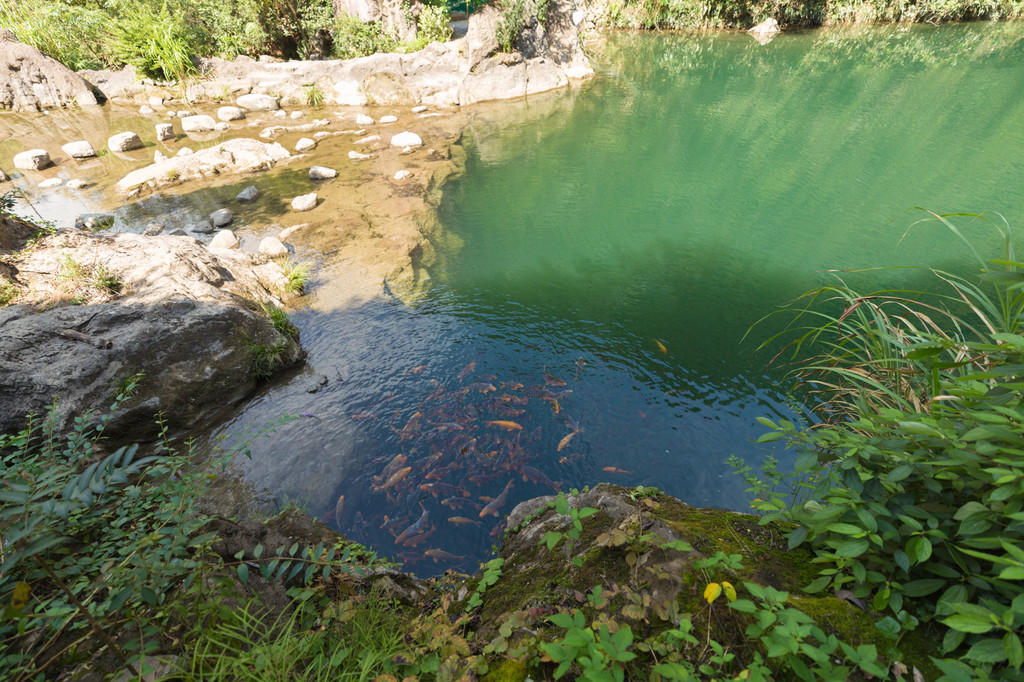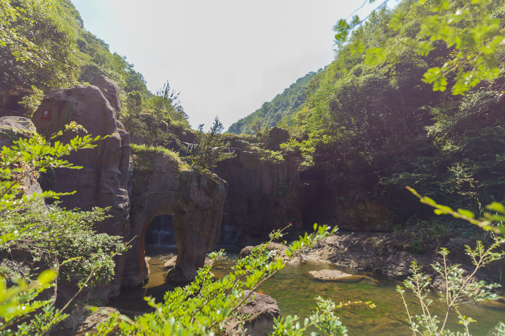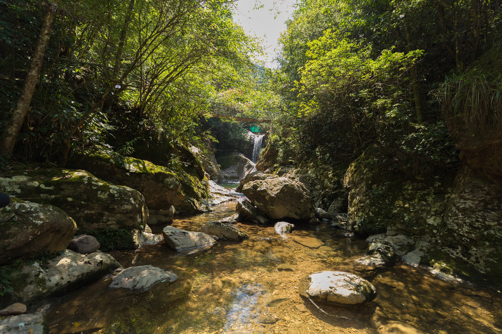 景区内有着成片的竹林。清风出来,竹林摇曳。遇到一场大雨,竹叶更是四处飘零。景色优美,气派动人。不得不说,这是一个绝好的旅游场所。这里还有湍急的河流,在山石之中,河流汇集一块,然后形成天然飞瀑。