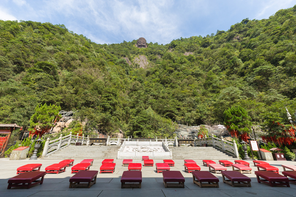 第三站要说的是千佛山景区。景区坐落在遂昌石练小镇。刚刚步入景区,便能看到一座天然的弥勒佛石像。远远望去,弥勒佛张口微笑,仿佛在欢迎着四方游客。大家争相打卡留念,并记录下如此美妙的时刻。