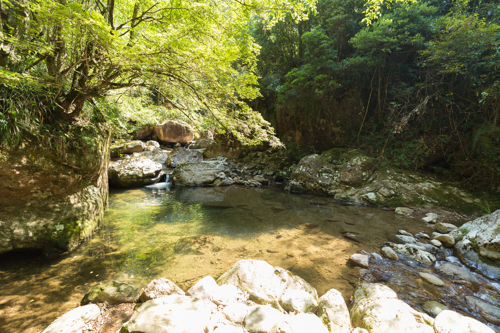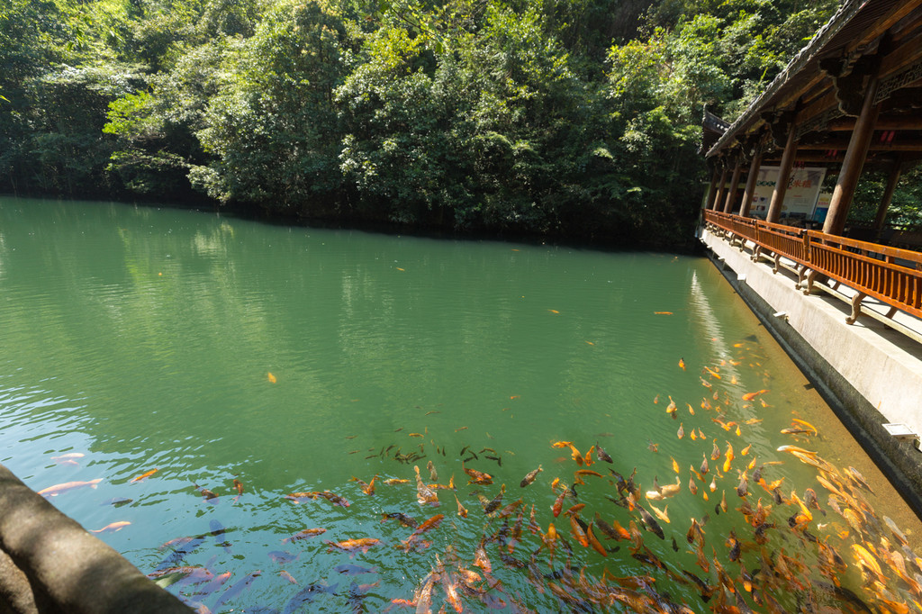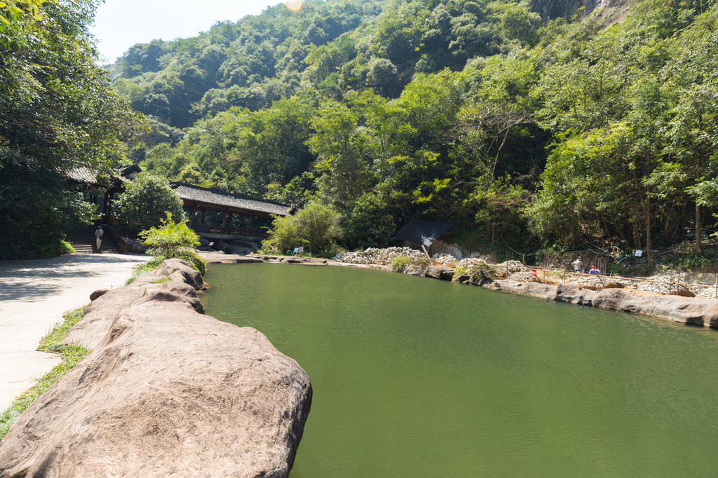 景区中到处都是茂林修竹。在清风的吹拂之下,林木则是不断摇曳。山岭之侧,清冽的泉水潺潺流淌,然后汇聚成为一条清澈河流。河流两岸,树木成荫,规模壮观。河流将所有的景点一一串联起来。沿着河畔行走,游人顿时心旷神怡,大家都倍感舒适。