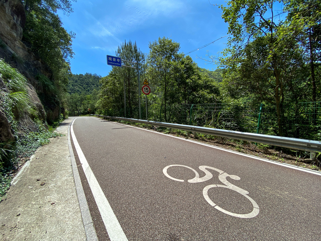 南溪绿道两旁都是茂密的植被,而大道之上可供市民休息纳凉。在如今的时节,这里已经有了不少的人流。老人们争相来到这里交谈,大家更是有说有笑,气氛无比热闹。值得一提的是,南溪绿道并不是绿色的。相反,它是红色的和黑色的柏油路。