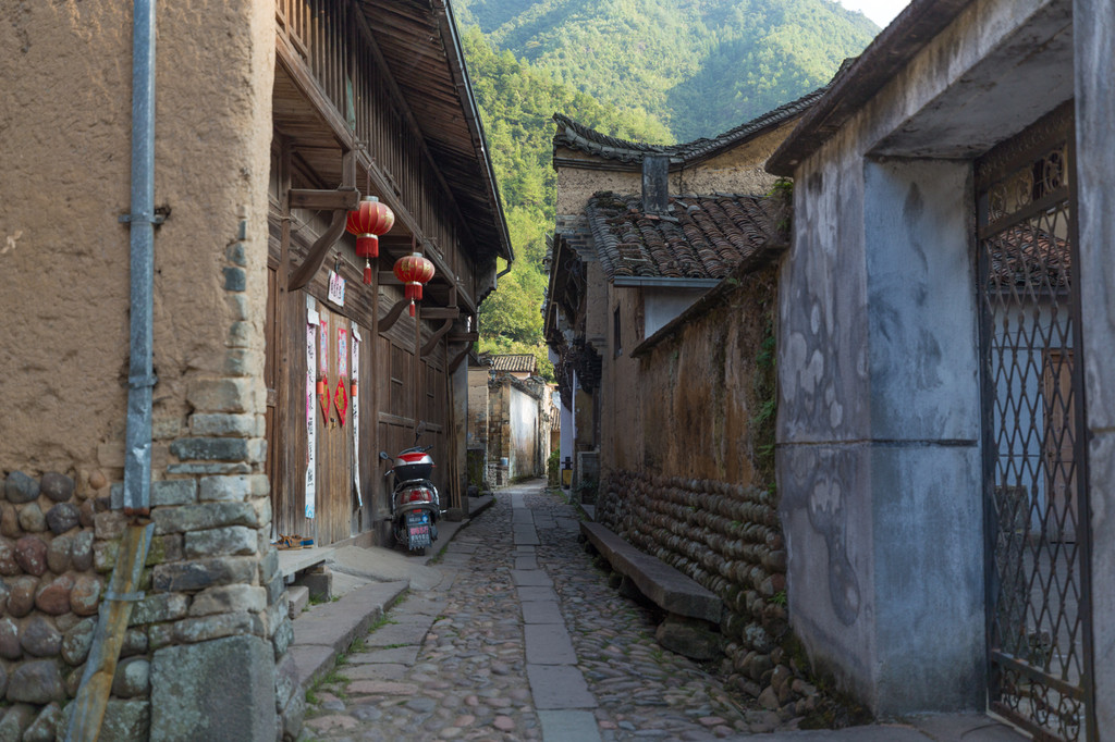 在村外,这里群山环抱,一条条拾级而上的小路铺成了大道。在日暮时分,雾霭慢慢笼罩住村子,一切都是如此祥和静谧。清澈的河水环绕着村落,野鸭正在啼鸣。这里完全保持了当年的古老风范。