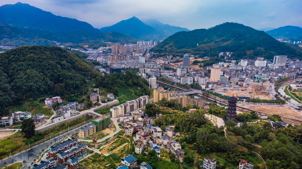 从高空俯瞰,整个遂昌县城静悄悄地枕在山下,宁静而美好,那些小而美的房舍在阳光下熠熠生辉,每一栋房舍里似乎都藏着许多故事。