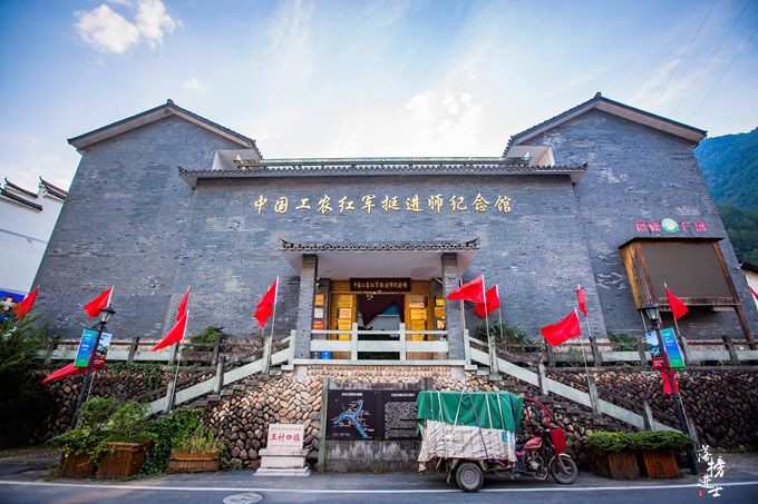 灰墙的中国工农红军挺进师纪念馆伫立在路边,门前红旗招展,朴素的建筑内,记录着一段波澜壮阔的历史。