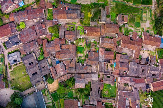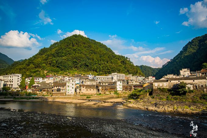 不仅是一座红色村庄,这里还有着极美的自然环境。远远望去,村子安静地坐落在绿意盎然的山脚下,一条江水从村前流过,民居错落有致,黑白灰的建筑格外有韵味。
