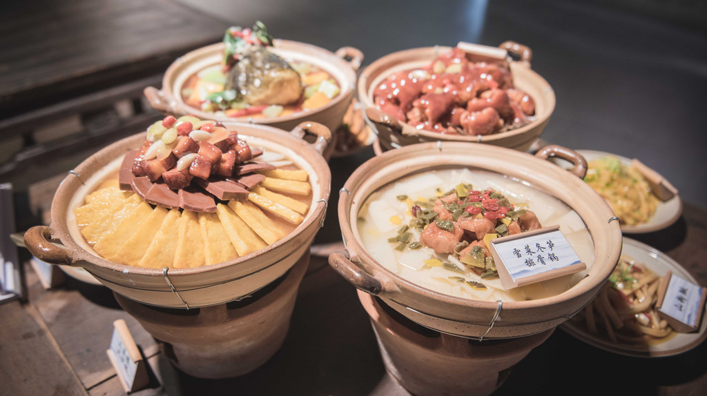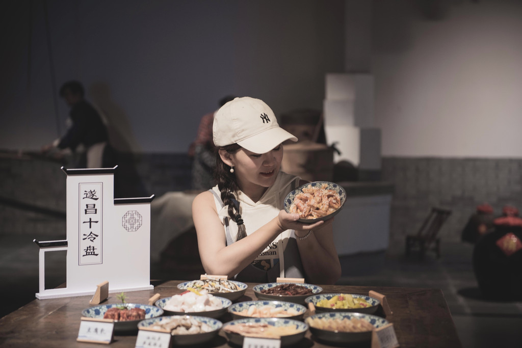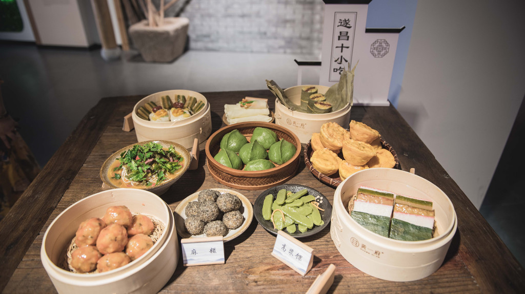展馆主要分为2层,一层主要以生活元素展示:像“遂昌十大碗”风炉宴、“十冷盘”“十小吃”、