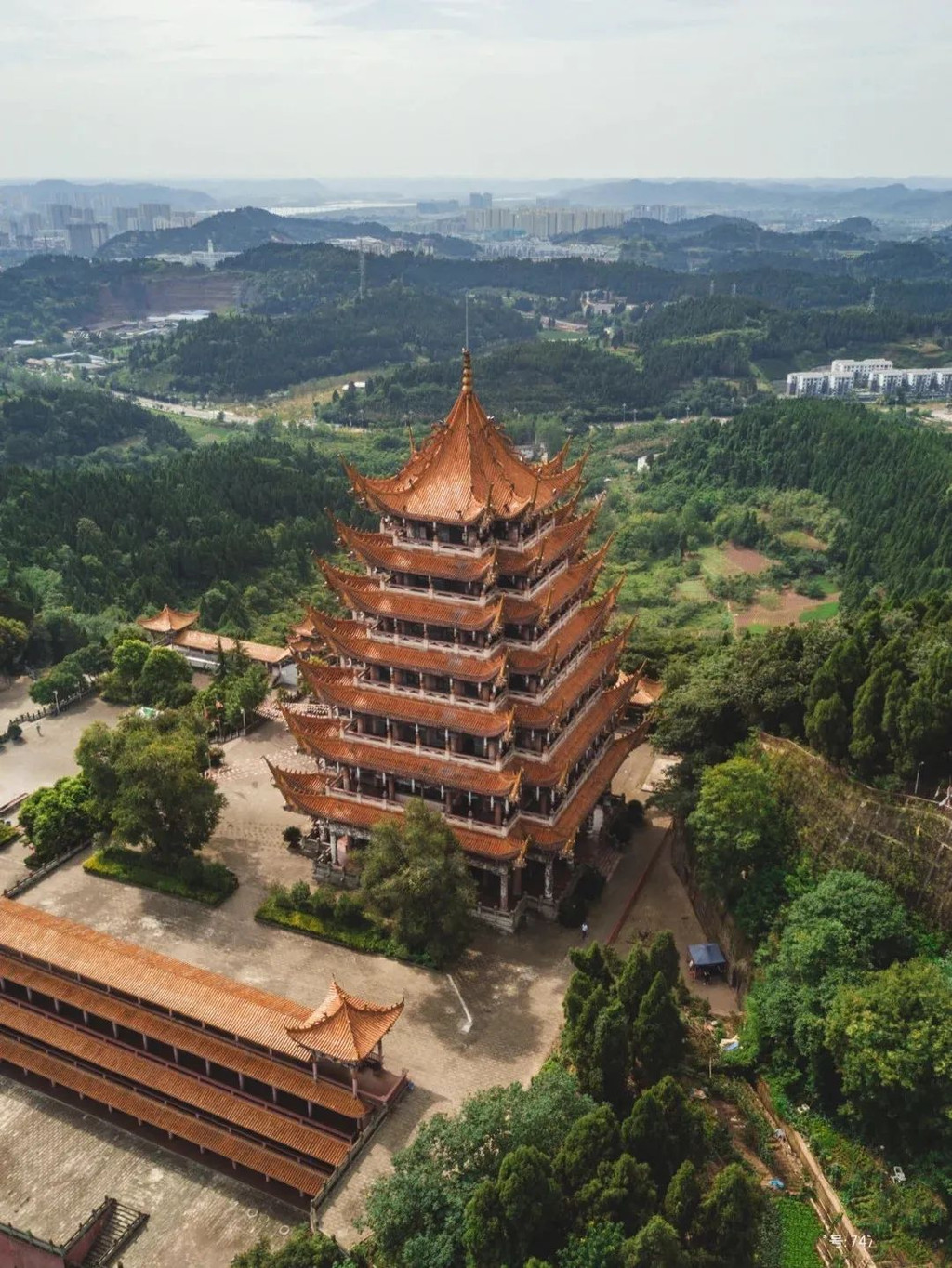 位于灵泉山之上,与广德寺隔涪江相望,始建于隋文帝开皇年间,距今1400年历史,属名副其实的千年古刹。