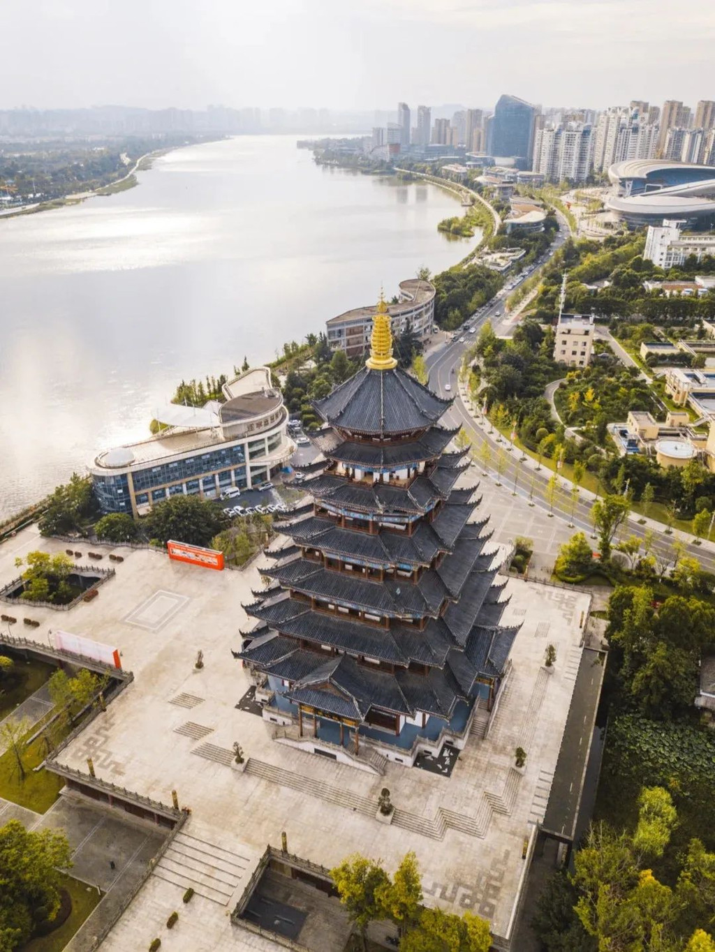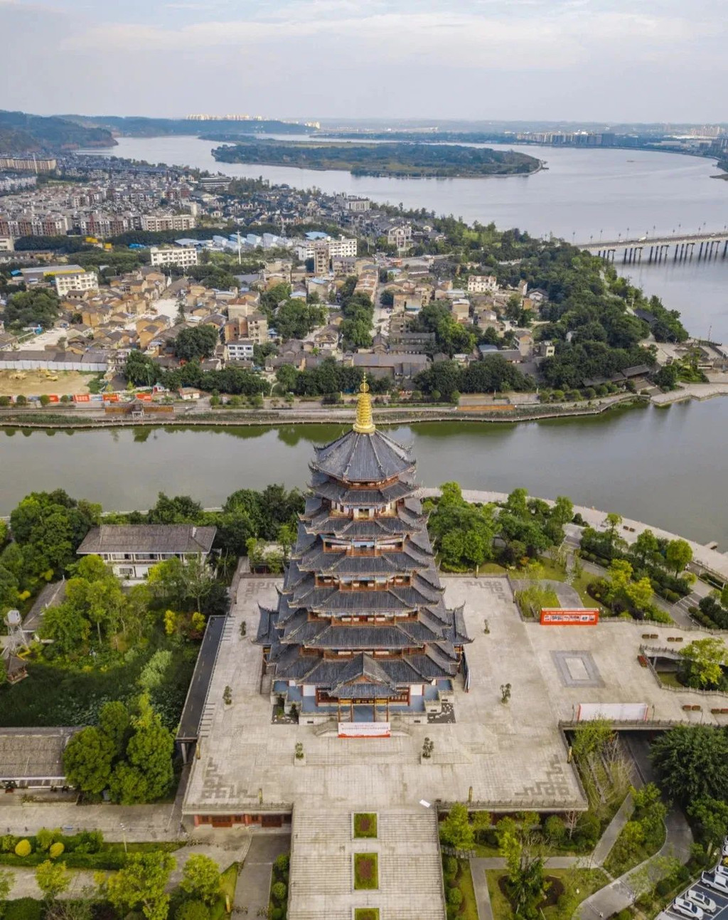 登上临仙阁远眺,俯瞰遂宁华光城景、河岸风光;
