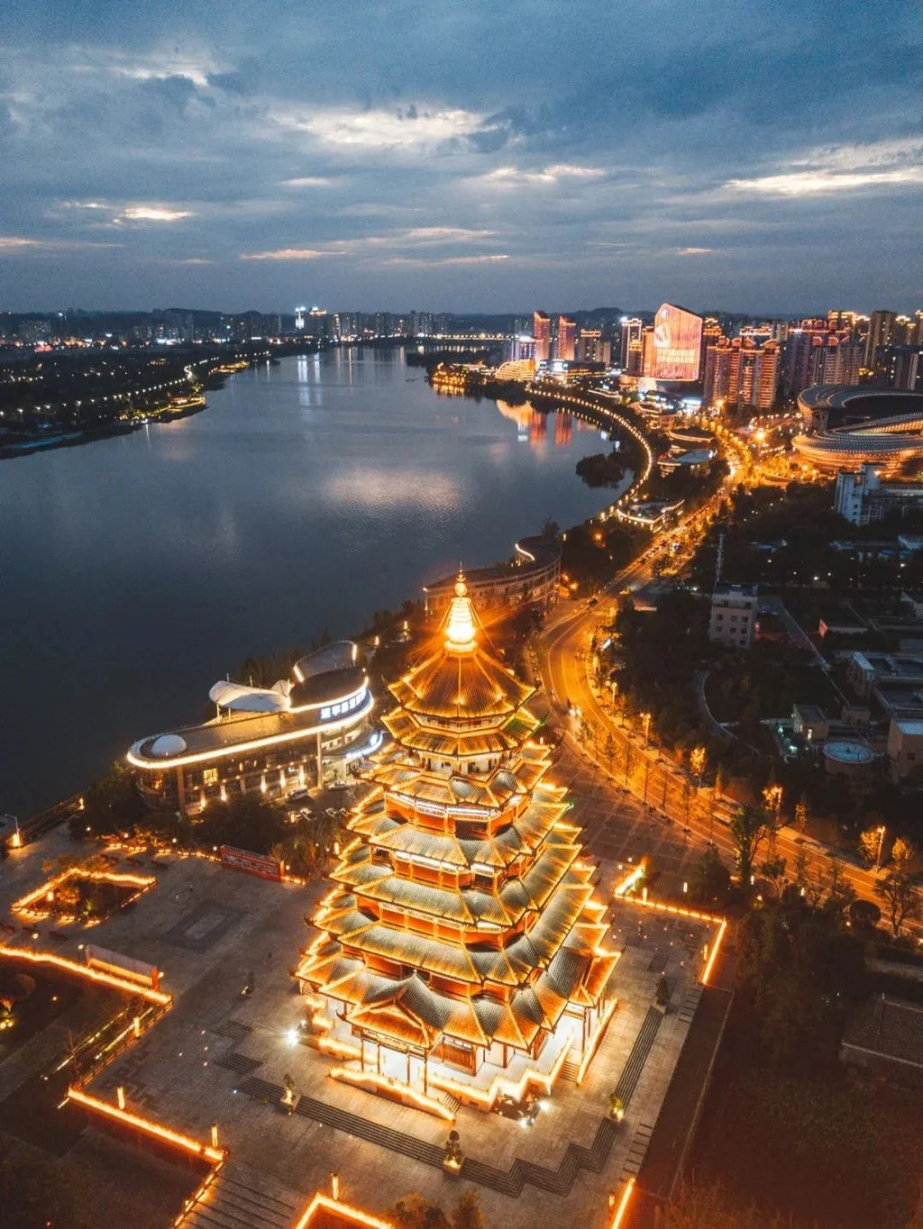 近看涪江漂流、碧水潺潺;远看遂宁发展日新月异、灯火阑珊。