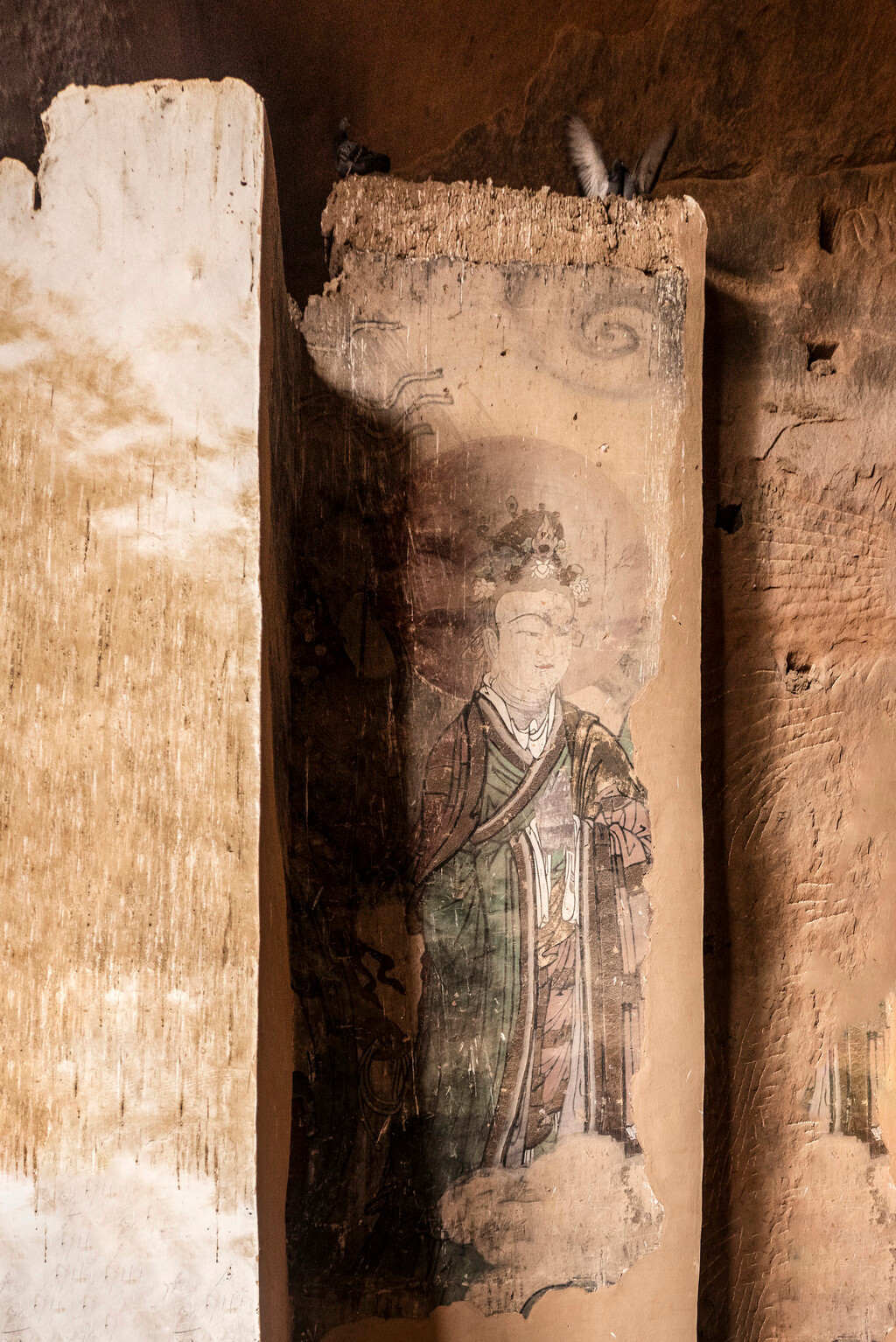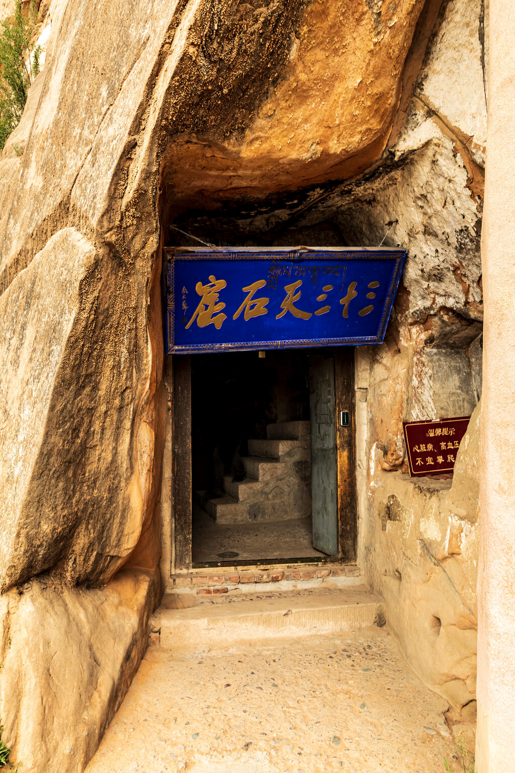 三十三天石窟距离地面43米,北凉时期开凿,上下成宝塔形,共7层21窟。窟内塑有度母像和36尊普明大日如来佛。其中,绿度母是三十三天石窟中的主佛,也是马蹄寺藏传佛教寺院的本尊佛。进窟要从山体内的栈道攀登而上,上下只有一条通道。这是中国唯一在山体内修筑栈道的石窟,栈道非常狭窄,上下游人相对而行,真可谓摩肩擦踵。爬了一小段后决定放弃。据说这里在文革时就已破坏殆尽,大多为重修,对我们的吸引力也不是太大。