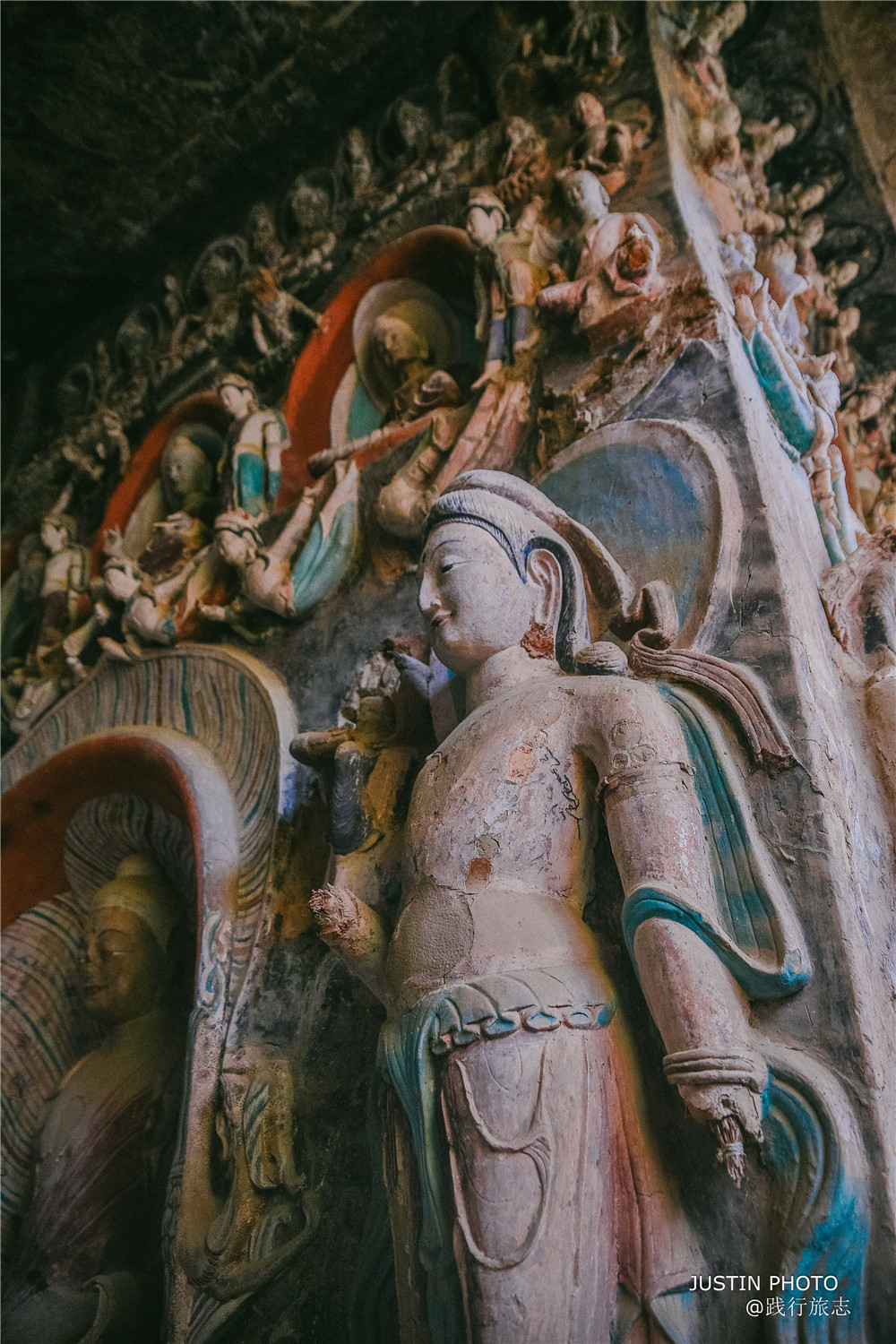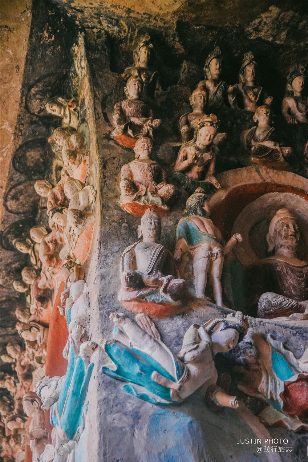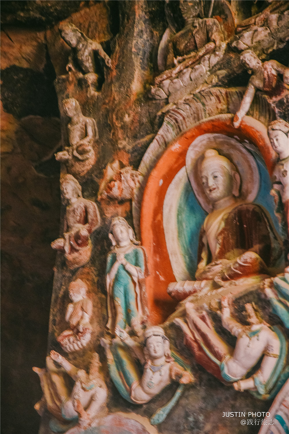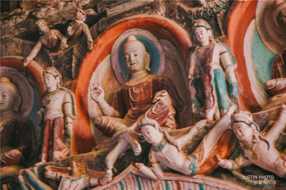 从整体上来说,这些石窟雕像最多的就是小佛像,这些小佛像密布,给人一种朝气蓬勃的感觉。这里小佛像总给人感觉像是小孩一样,举臂伸腿的姿态好像是乘风从天而降一样,衣着的纹路都是十分清晰,给人一种简洁舒畅的感受。