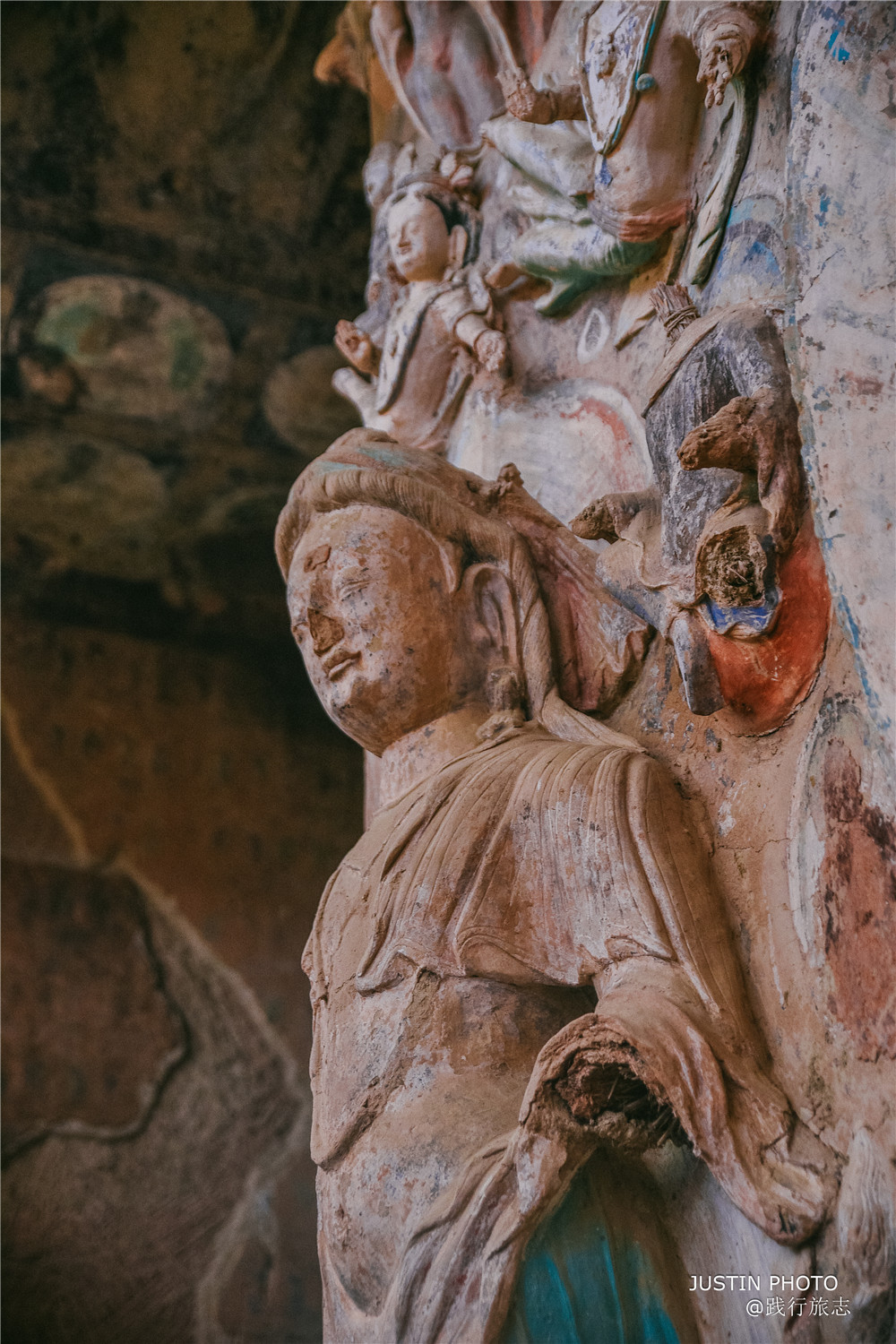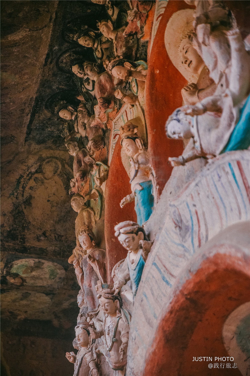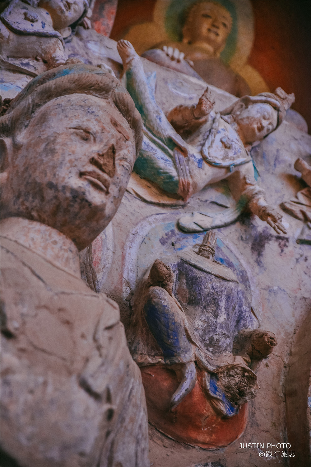 从整体上来说,这些石窟雕像最多的就是小佛像,这些小佛像密布,给人一种朝气蓬勃的感觉。这里小佛像总给人感觉像是小孩一样,举臂伸腿的姿态好像是乘风从天而降一样,衣着的纹路都是十分清晰,给人一种简洁舒畅的感受。