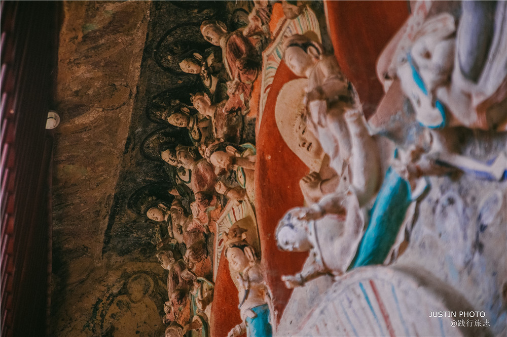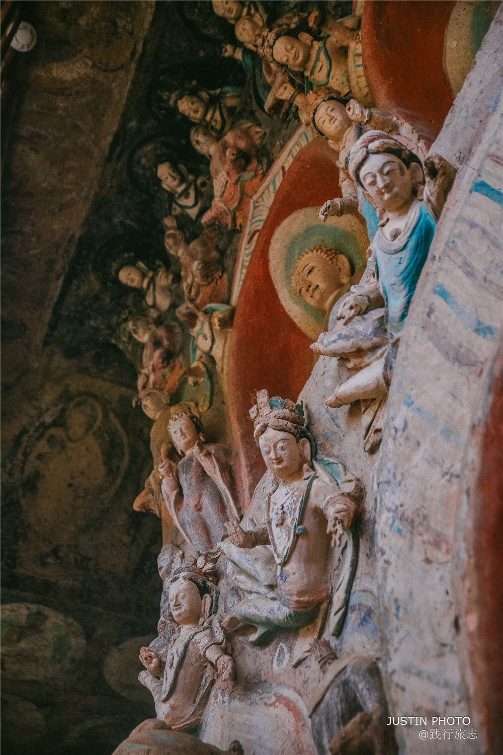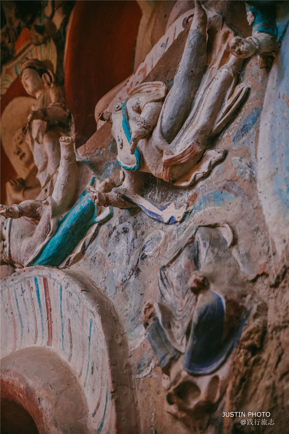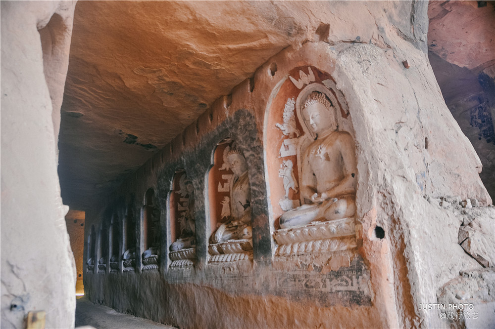 三十三天石窟,开凿于北凉时期,由敦煌人郭瑀及其弟子所开凿,上下七层,一共是21个石窟,整整齐齐地排列在悬崖上,悬崖目测有百米高,雄伟让人叹为观止,气势十足,在路上远远就能看到,石窟镶嵌在墙壁上,造型之奇特极为罕见,但让人感叹的是,其实这些洞窟的背后,还隐藏着一个鲜为人知的故事。