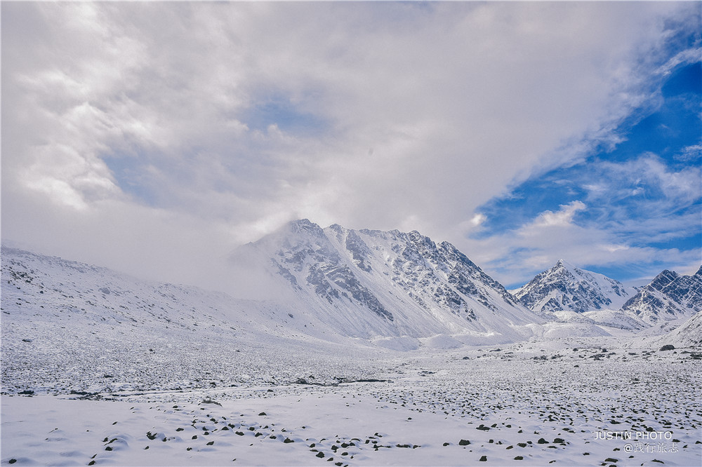 巴尔斯雪山虽然海拔很高,但是很多人却不会高反,很多人说这是高原上最不会高反的雪山,走到巴尔斯圣山的观景台的时候,我们才看清了巴尔斯的真面容,巴尔斯雪山真的太美了,美的让人让人窒息,由于我们当天来的时候天气很好,巴尔斯雪山云卷云舒,给人一种特别雄伟的感觉。