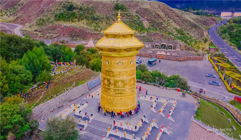 来到县城大经轮,这里号称是世界上最大的转经筒,需要十个人才能转动起这个转经筒,这里是肃南人民祈福的地方。