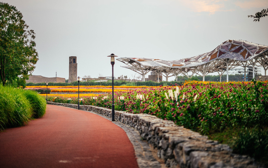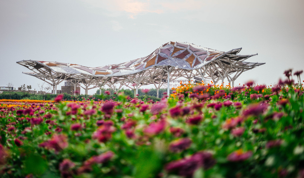 612块花田组成的衲田花海,在临近10月的秋日里,依旧盛开着几十种花儿,他们颜色不一,气质不一,醉蝶花、硫华菊、粉黛乱子草……名字都美的充满想象空间,还有许多我连名字都唤不出的花儿,一片花团锦簇,热闹非常。