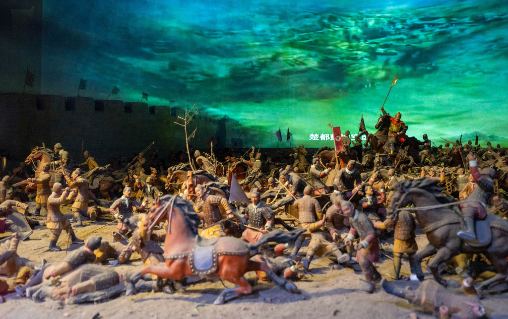 项羽生平最知名的两场以少胜多的大战—— 巨鹿 之战和彭城之战,堪称军事上的神话,也是项羽战功赫赫的功章簿中,最不能缺少的两笔,在景区里,设有专门的展馆,为游客展示当年的战争盛况。