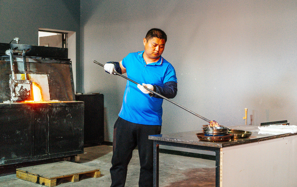 现场的师傅有做介绍,原来宿迁的特有的硅砂矿藏丰富,这里的玻璃工业发展蓬勃而超前。而我也有幸一观了“吹玻璃”的过程。
