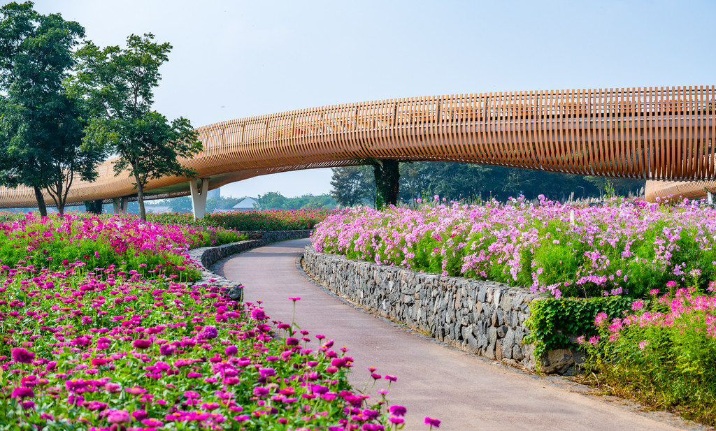 衲田花海所在的所在地,便是江苏宿迁的三台山国家森林公园,坐落在骆马湖畔,公园堪称为城市的“氧吧”和“后花园”,空气清新非常,一眼望去花花草草的自然风情,有着天然去雕饰的珍贵。