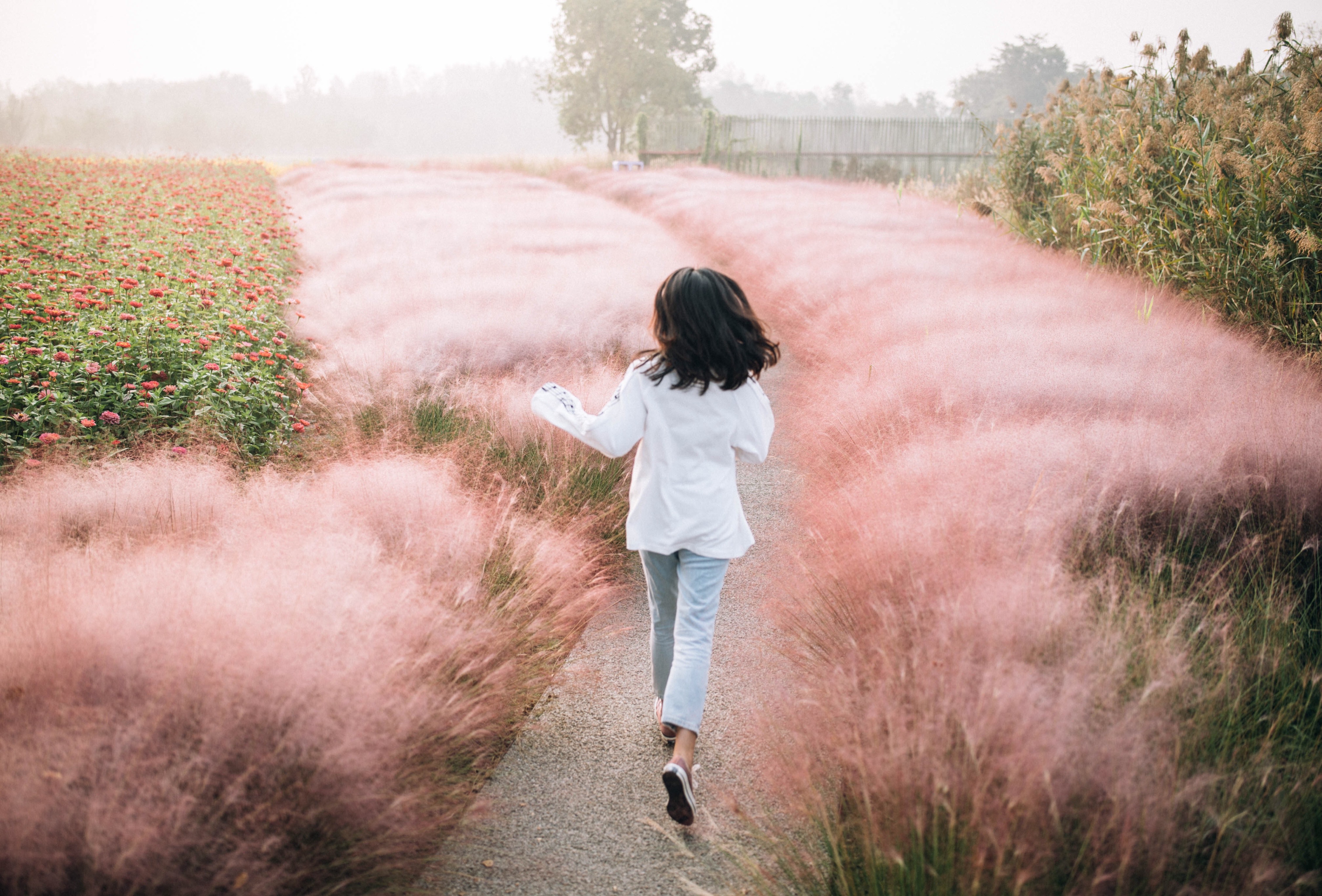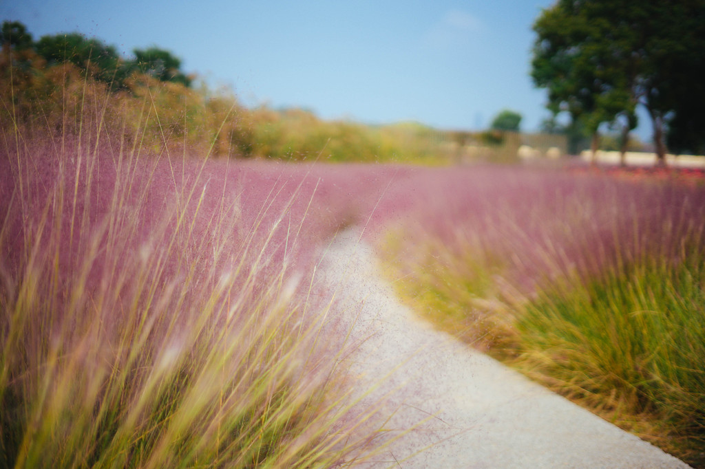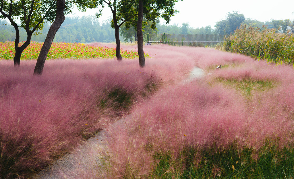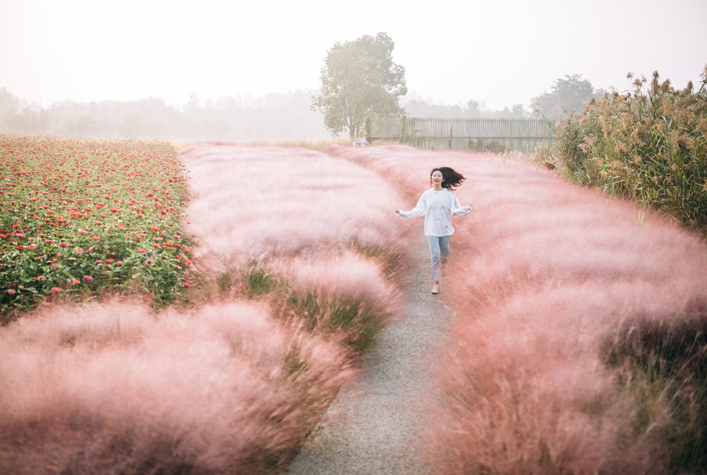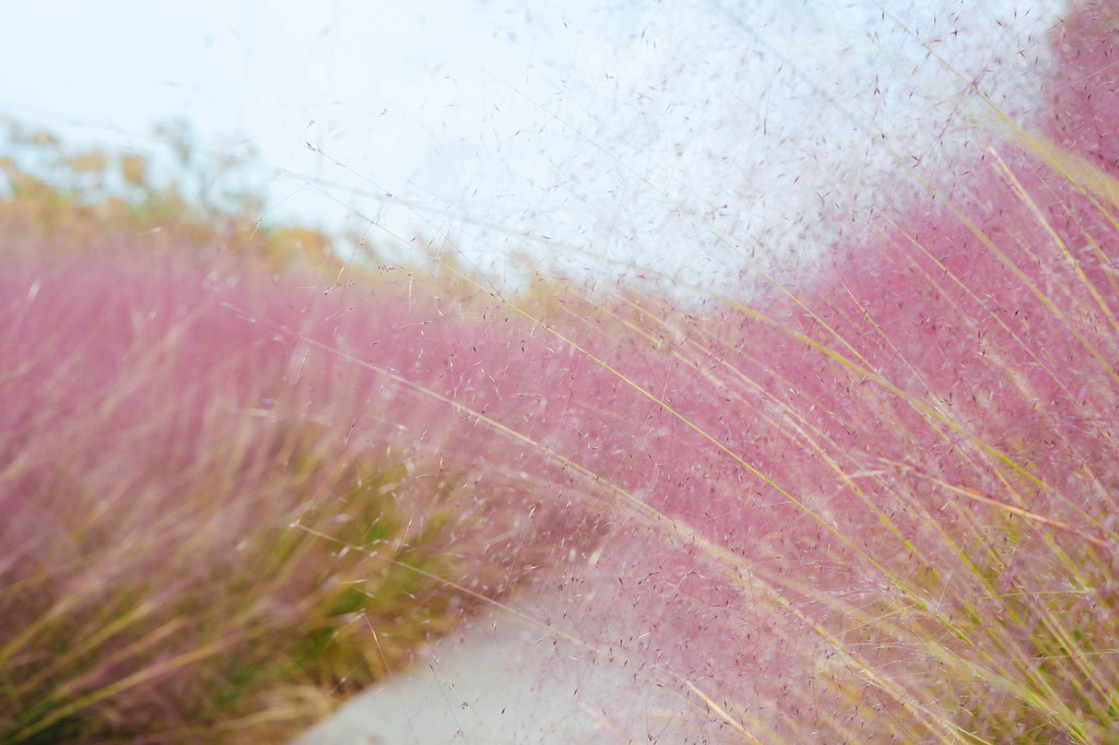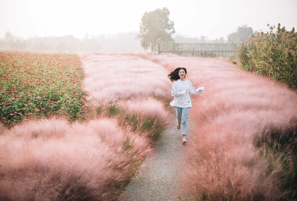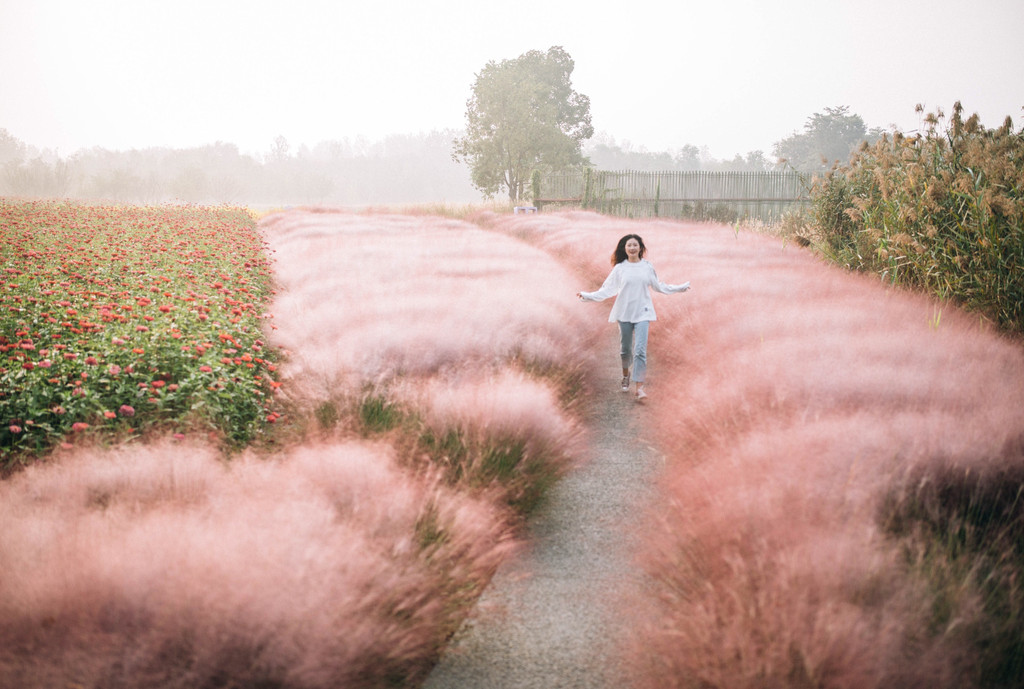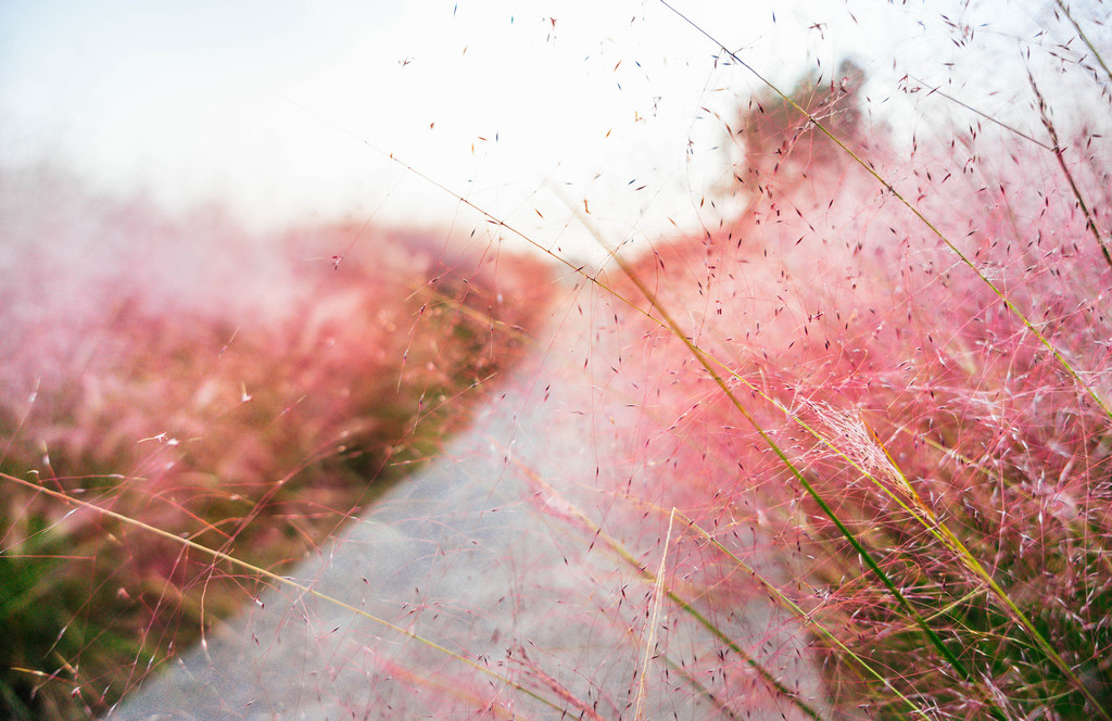 若是起个大早,还能遇见一日24时中最美的粉黛乱子草,清晨的露珠还未消逝,这大片大片的粉紫色都是雾蒙蒙的,一团团充盈着眼睛,宛如仙境。眼前的风景太美,终于明白,为何“回眸一笑百媚生,六宫粉黛无颜色”,用“粉黛”代指美人。