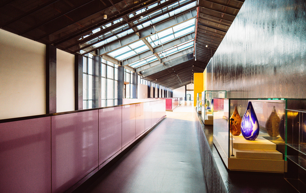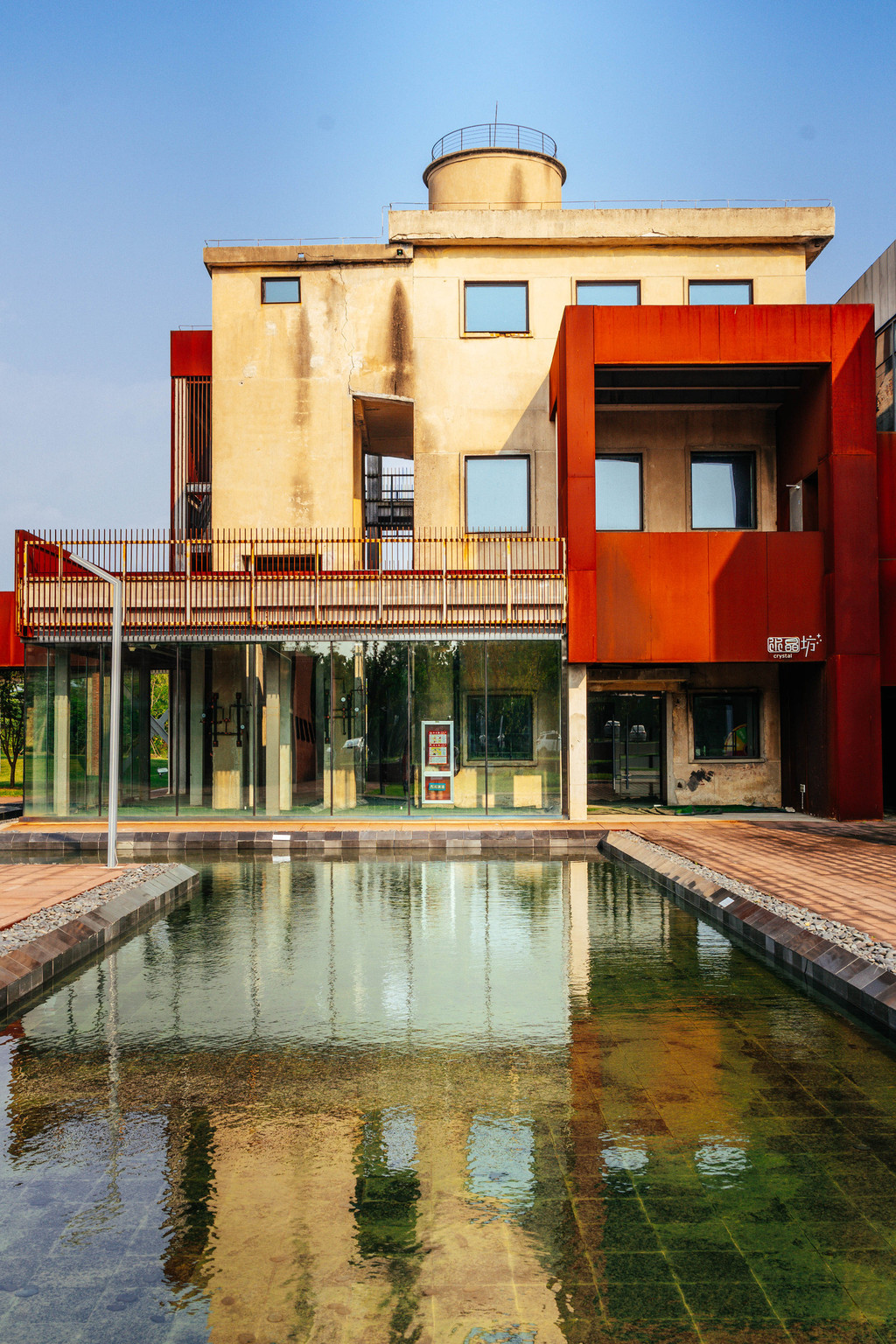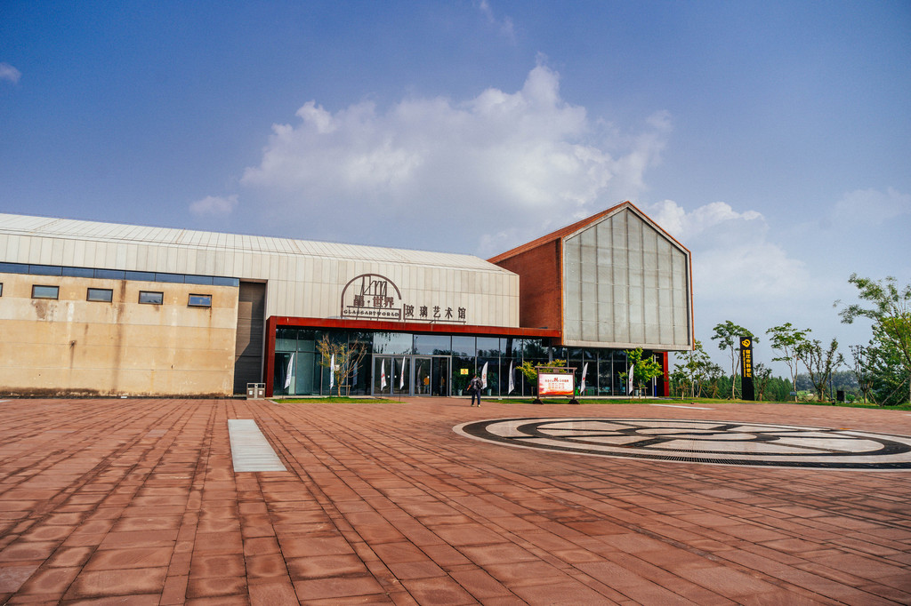 从三台山森林公园出门往南走,没多远是一栋旧厂房模样的建筑,看似陈旧,可棱角与光芒又风格十足。这里就是由世博会“中国馆之父”何镜堂院士领衔设计的晶世界玻璃艺术馆。