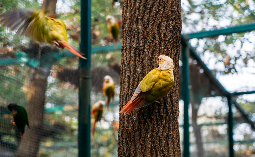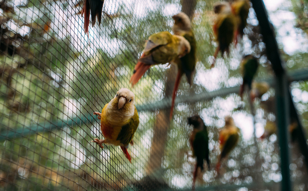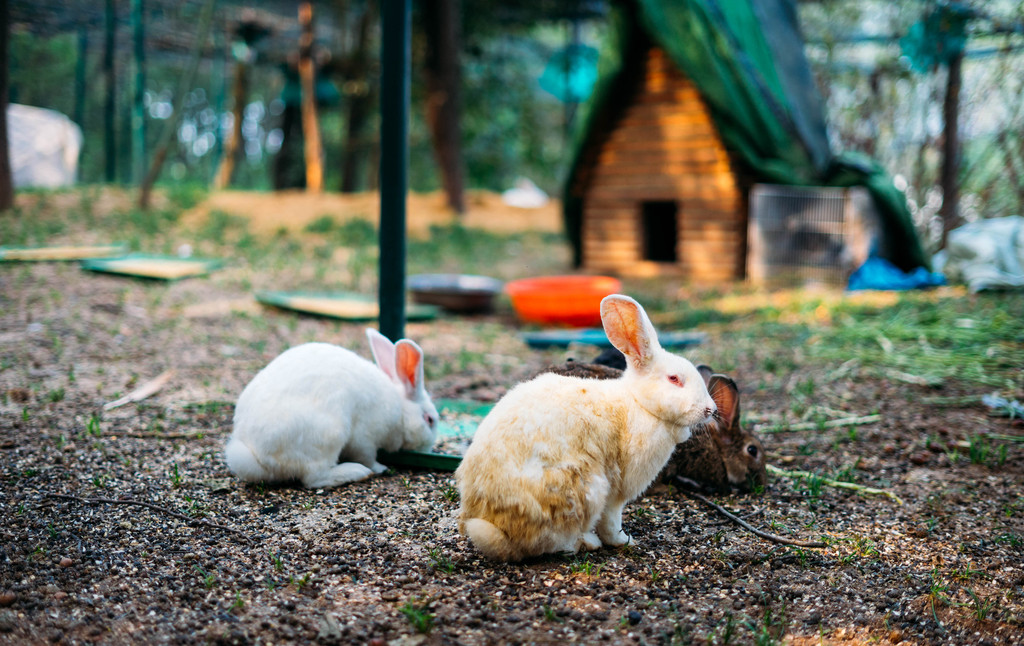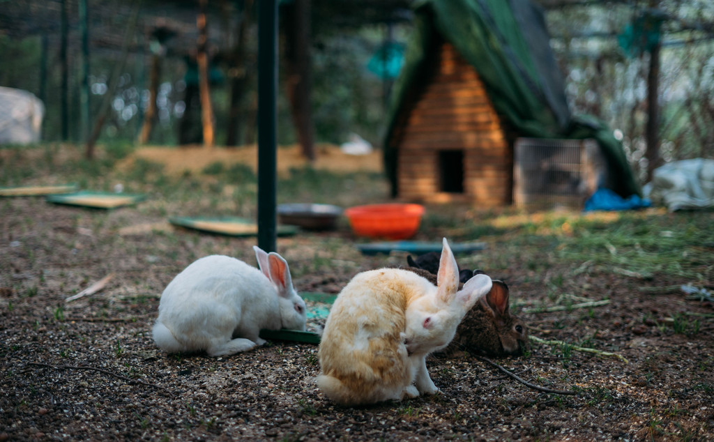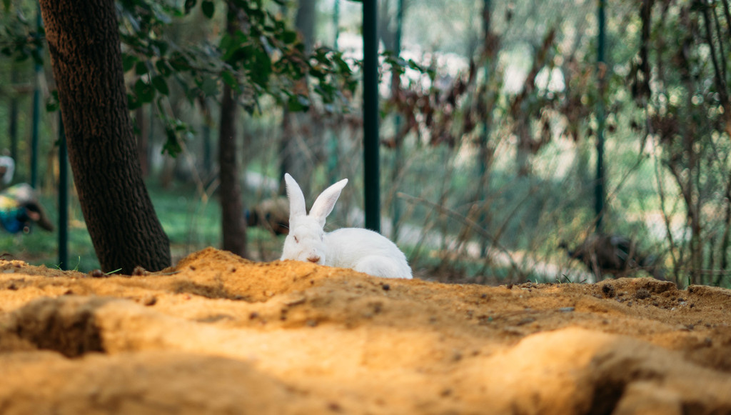 鹦鹉园旁是可爱的小兔子,比起鸟儿们的热情,兔子们害羞的很。白的灰的,一面低头吃饭一面也警觉的注视着我们一行人,生怕我们做出什么不轨的举动。
